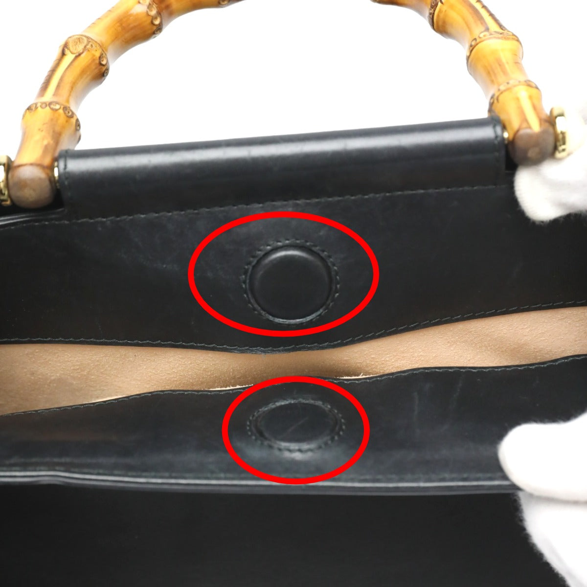 GUCCI Handbag 459076 leather black Bamboo leather 2 way bag Women Used Authentic