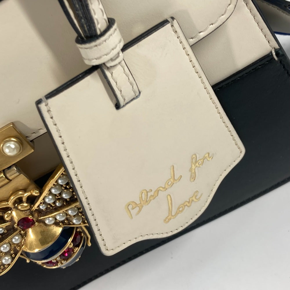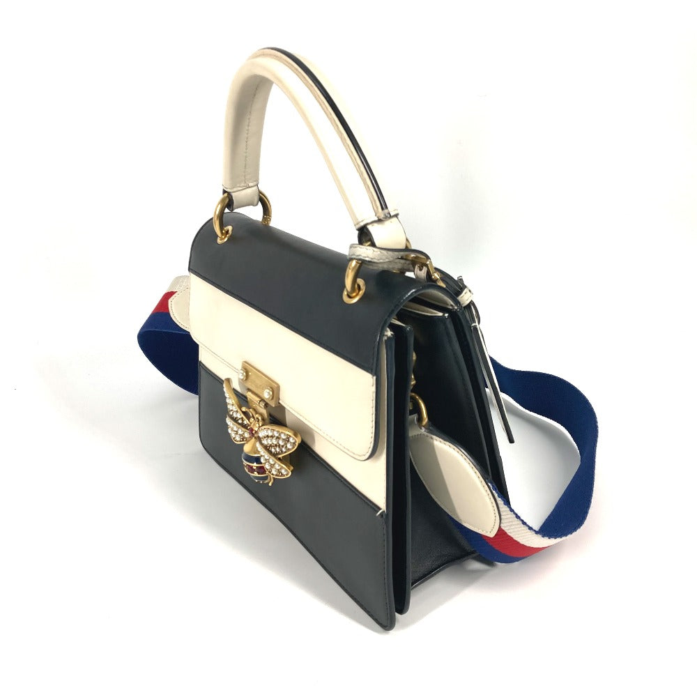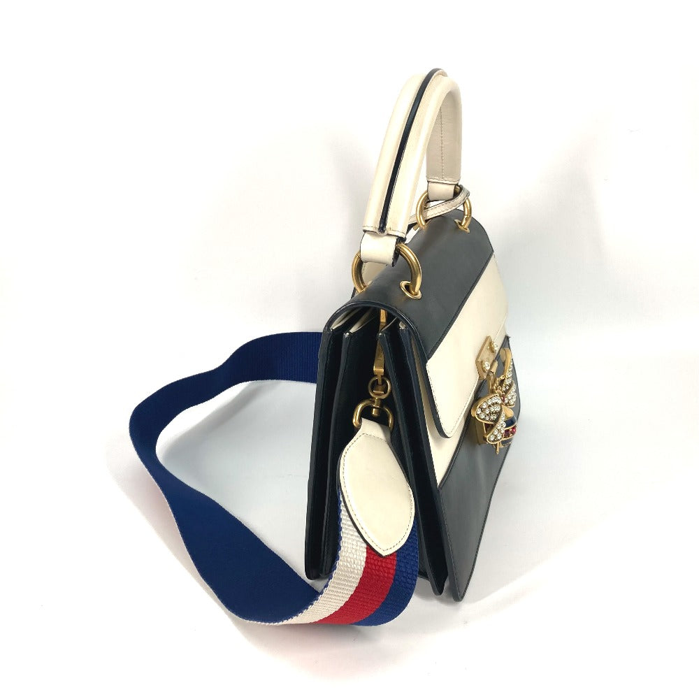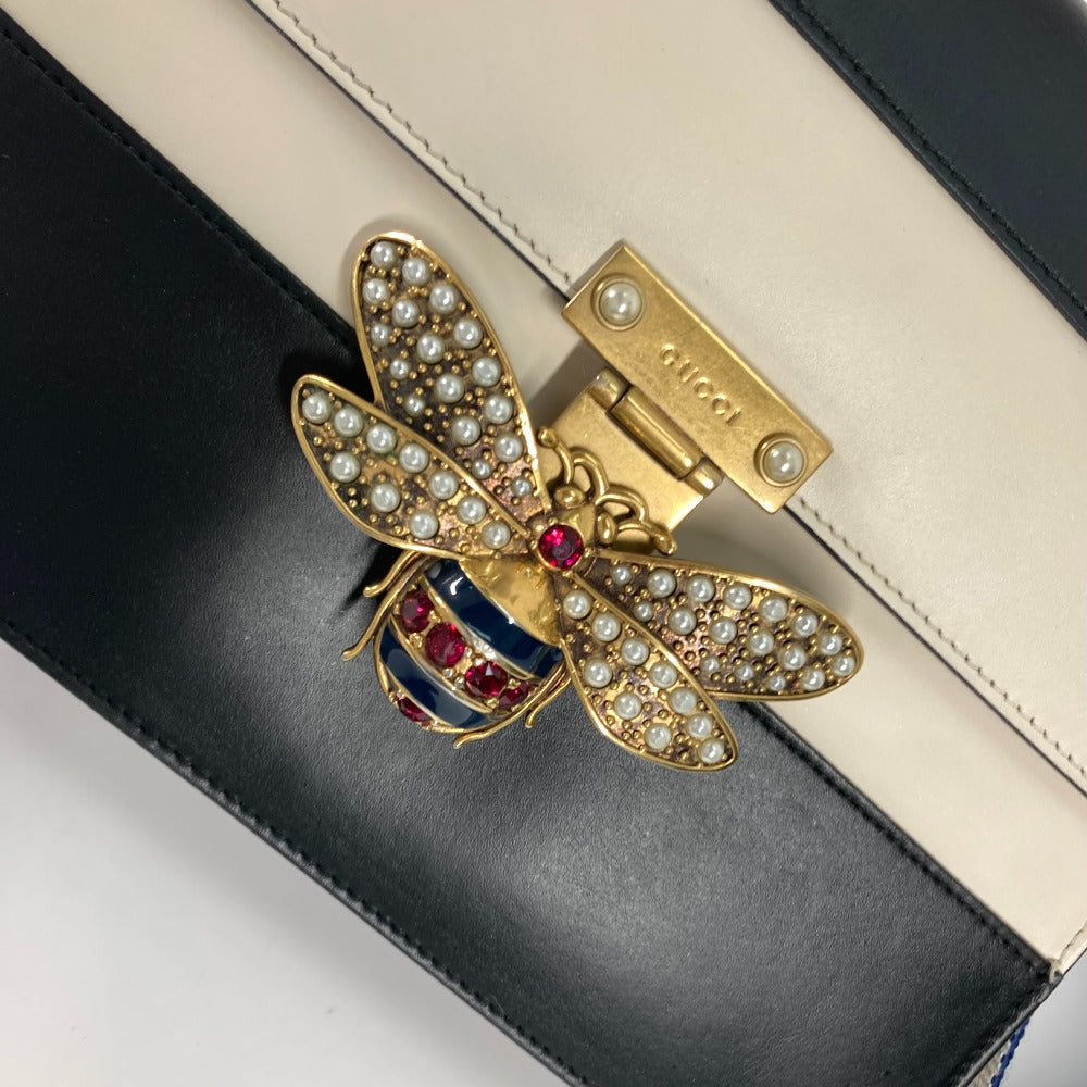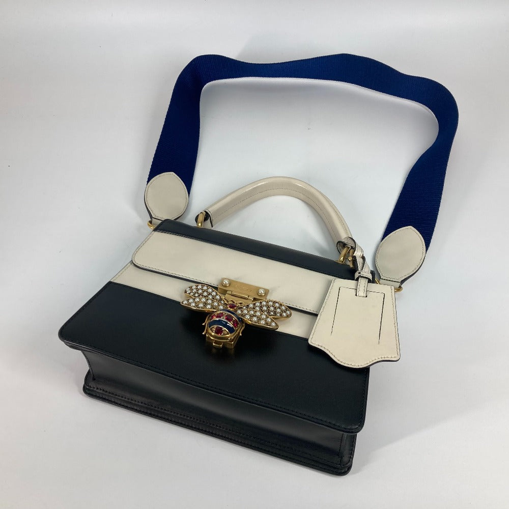 GUCCI Handbag 476541 leather Black x white Bijou Fake Pearl Queen Margaret BEE Bee Women Used Authentic