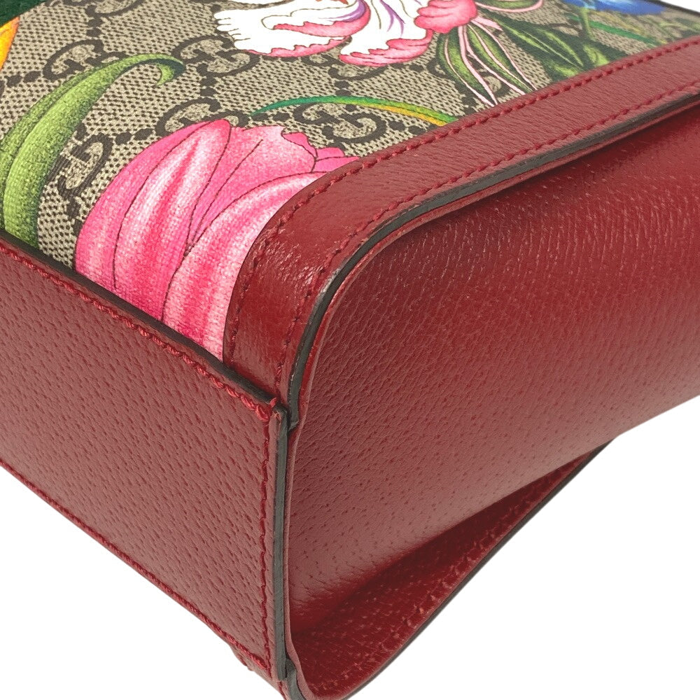 GUCCI Handbag 547551 Leather, PVC beige 2way GG Flora Shoulder Bag Women Used Authentic
