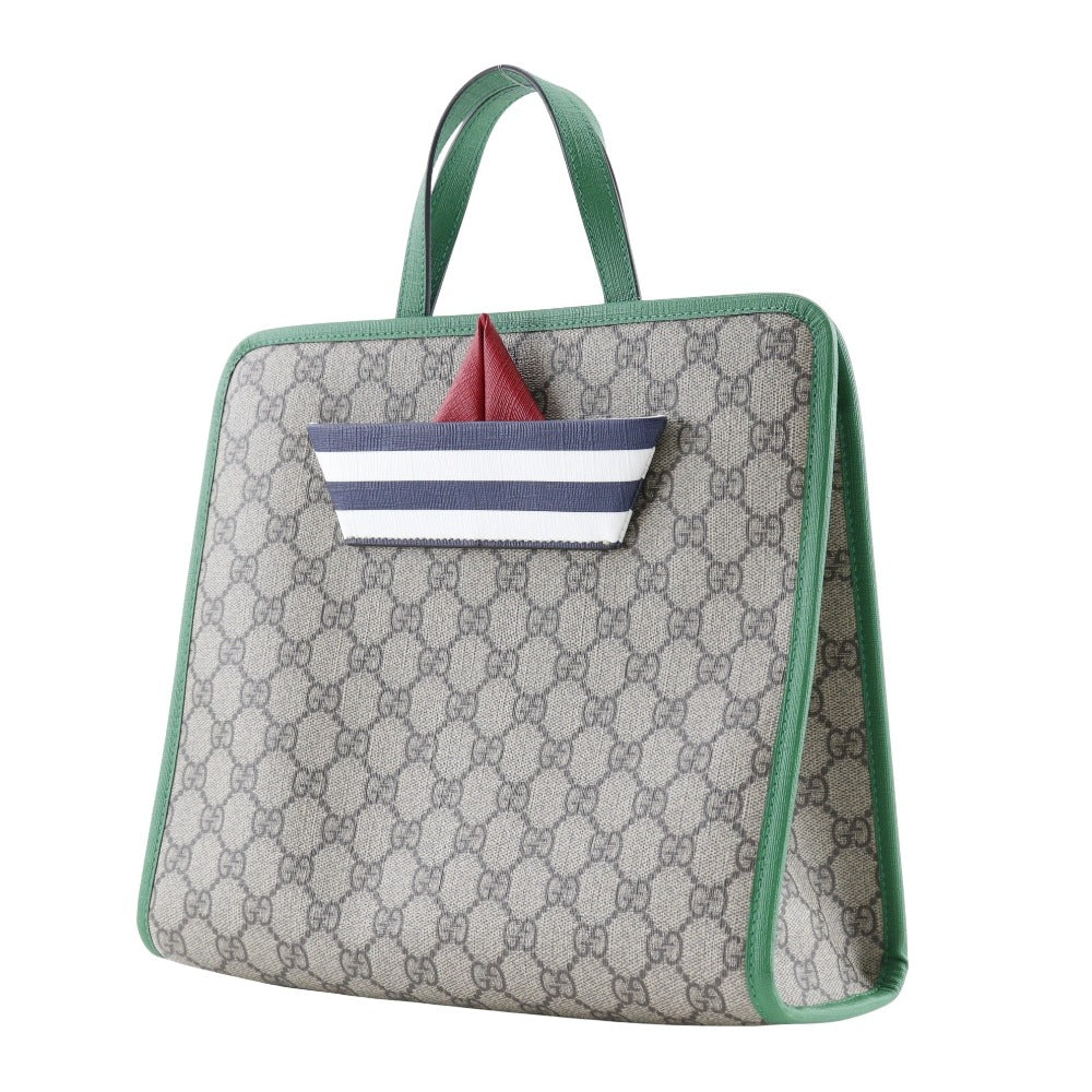 GUCCI Handbag 605662 GG Supreme Canvas Brown / green Children's Boat Tote Bag Women Used Authentic