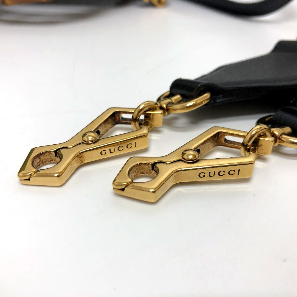 GUCCI Handbag 655661 leather black Diana Mini Bamboo Women Used Authentic