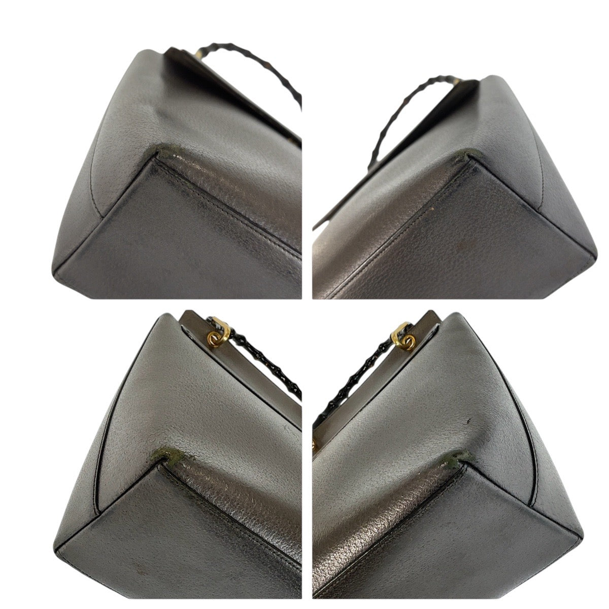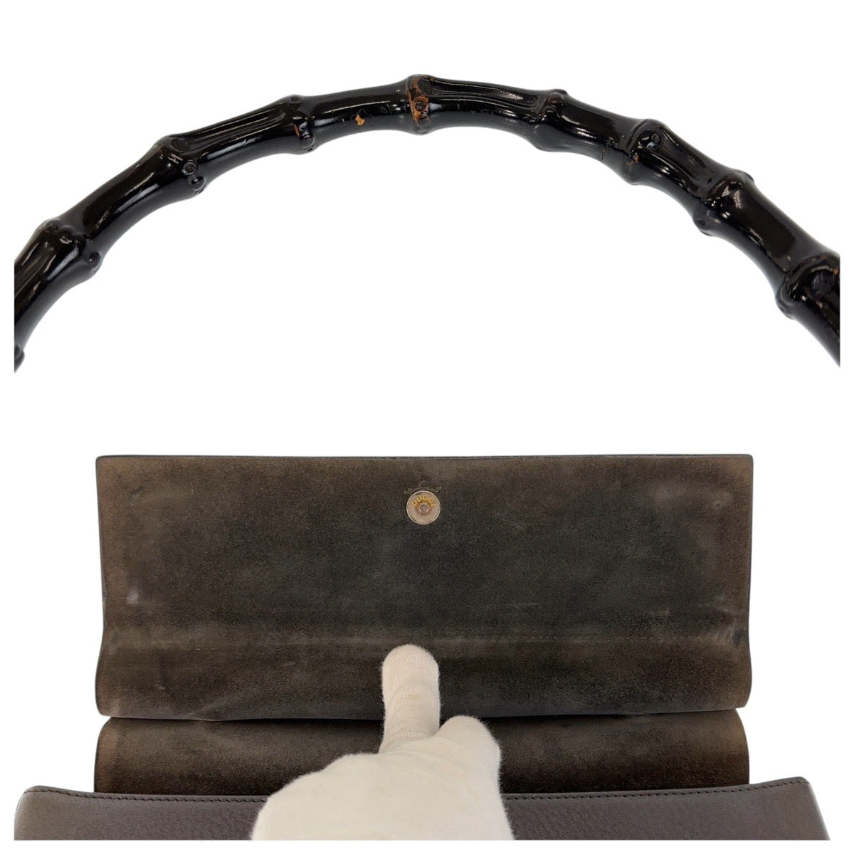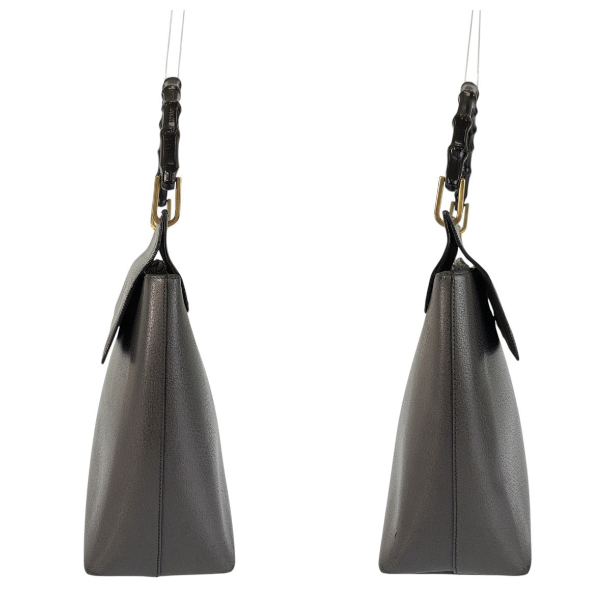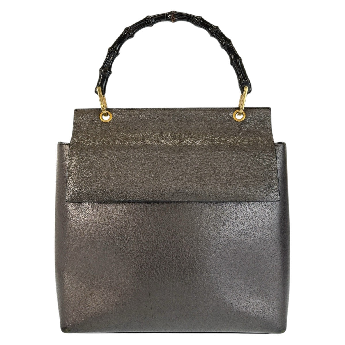 GUCCI Handbag leather Grey GoldMetal Handbag Shoulder Bag Bamboo Women Used Authentic