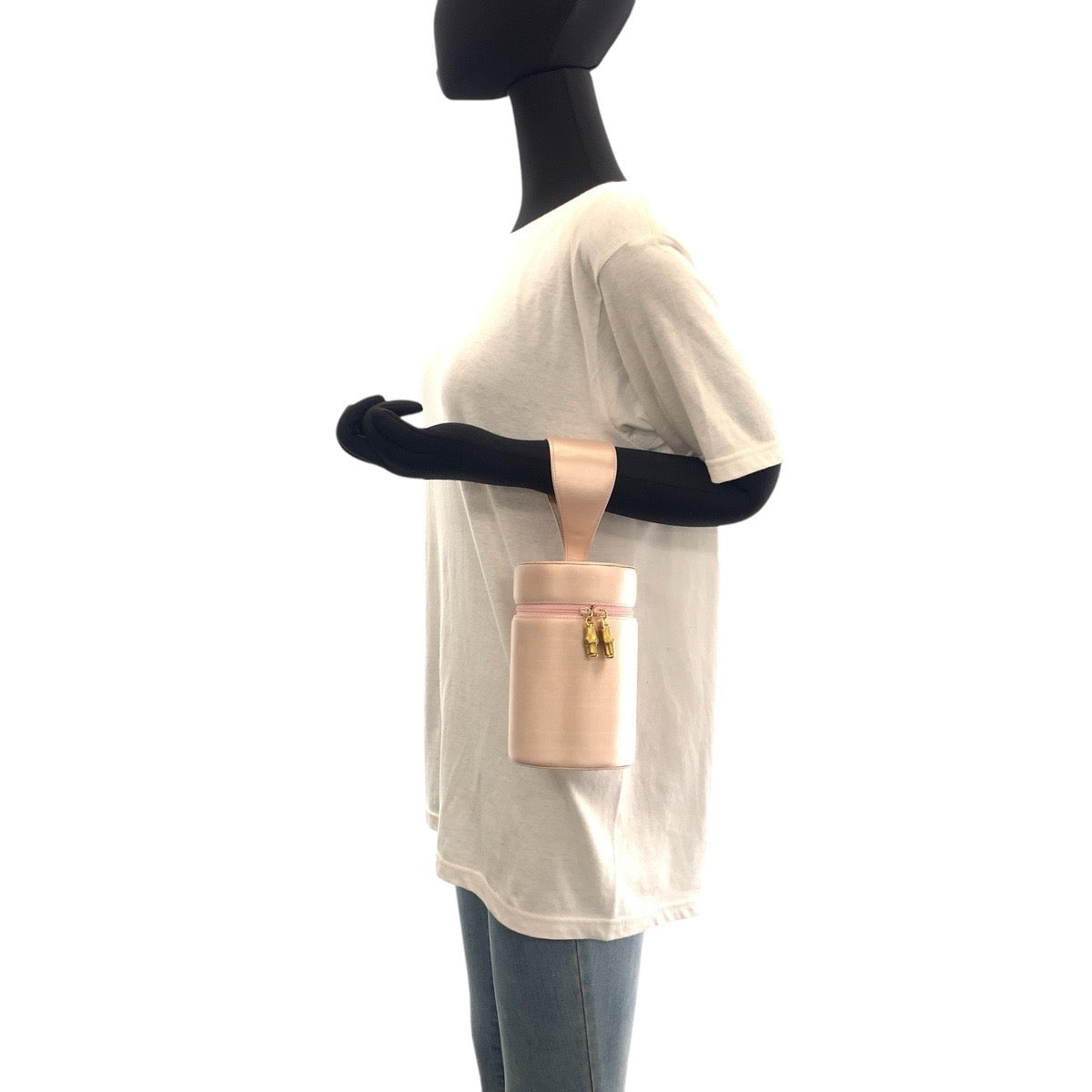 GUCCI Handbag Satin Pink Gold Metal Handbag vanity bag Bamboo Women Used Authentic