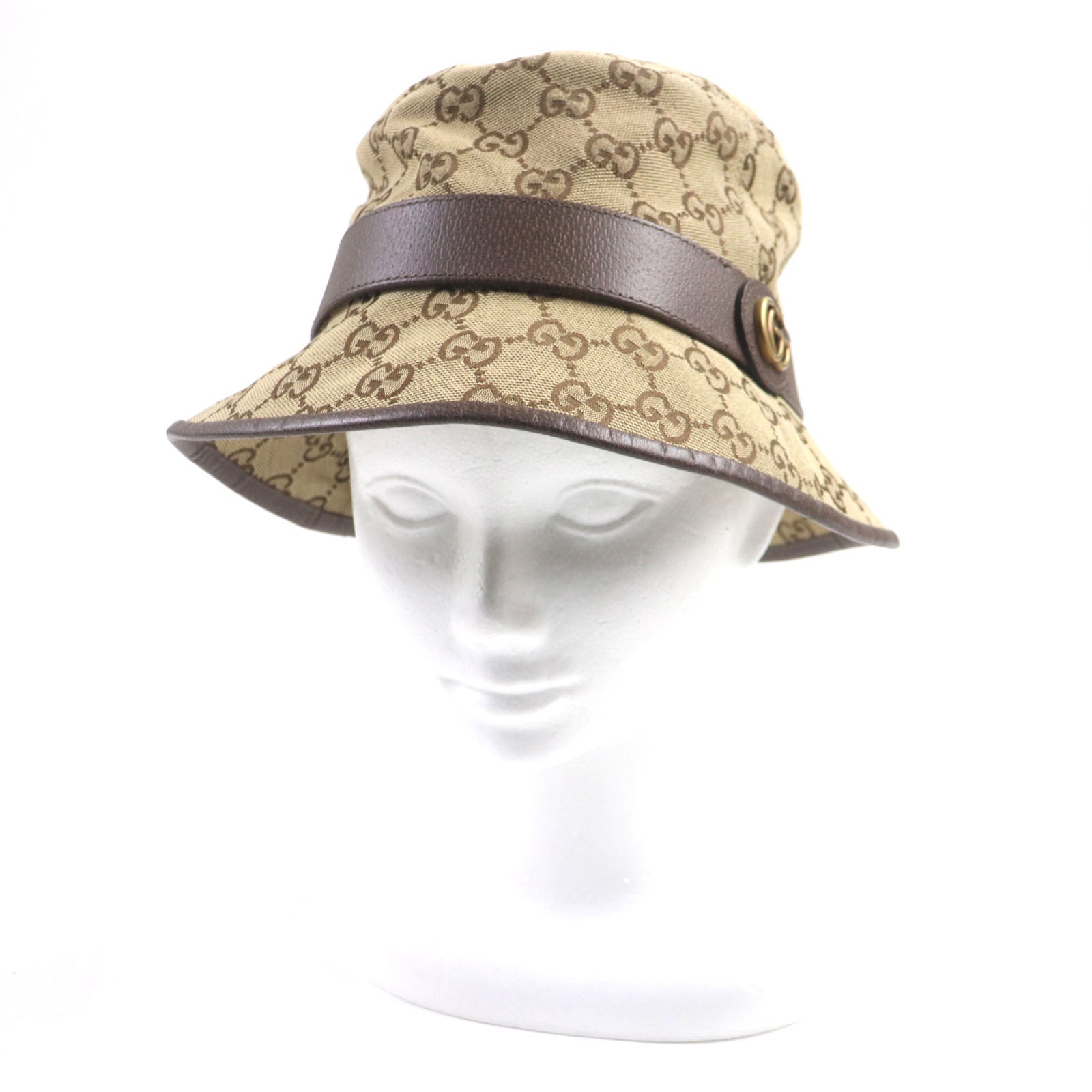 GUCCI hat 576587 Outer material: 71% cotton, Outer material: 29% polyester, Lining: 100% cotton, Leather part: Cowhide light brown GG Canvas Fedora Hat mens M Used Authentic