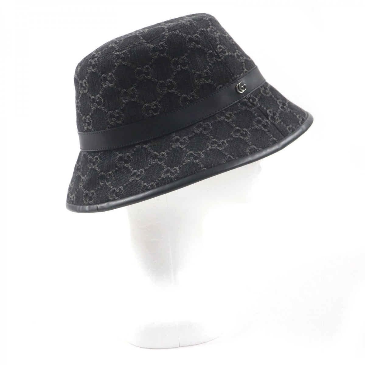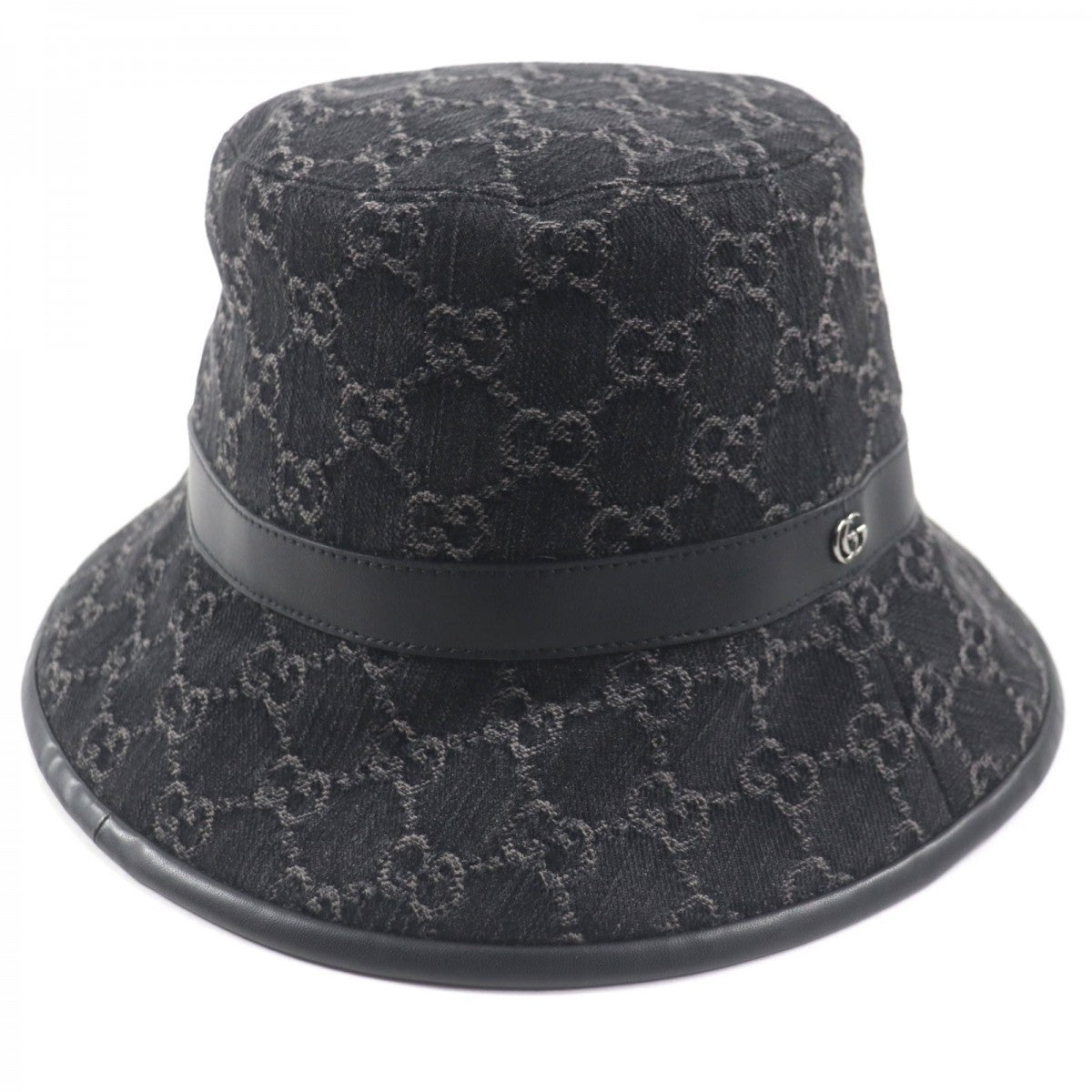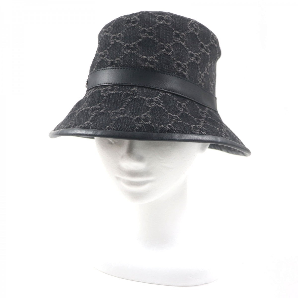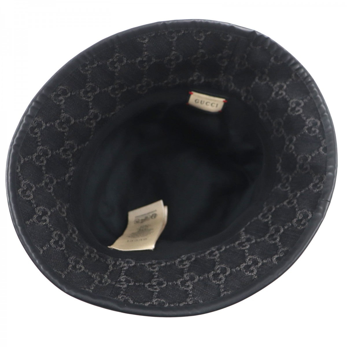 GUCCI hat 768647 Outer: 100% cotton, Lining: 55% cotton, Lining: 45% rayon, Leather part: cowhide black mens L Used Authentic