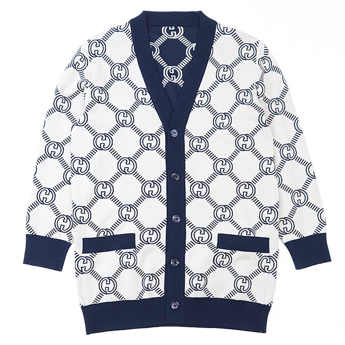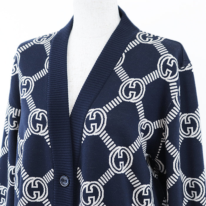 GUCCI knit 692696 XKCB2 4492 96% wool, 3% nylon Navy, Ivory Women M Used Authentic
