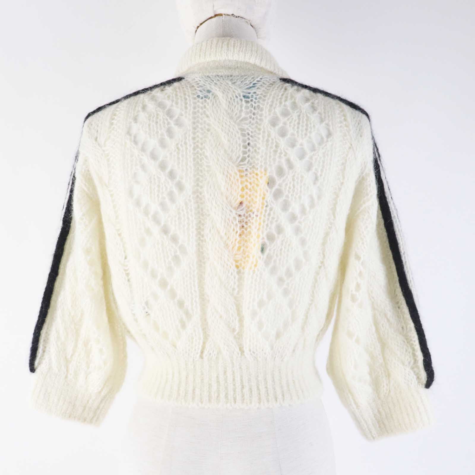 GUCCI knit 713023 Outer: 67% mohair, Outer: 28% nylon, Outer: 5% wool, Part: 63% mohair, Part: 29% nylon, : 7% wool, 3% polyurethane Embroidery: 67% mohair, 28% nylon, 5% wool Inner: 75% acetate, 25% silk white Women XS Used Authentic