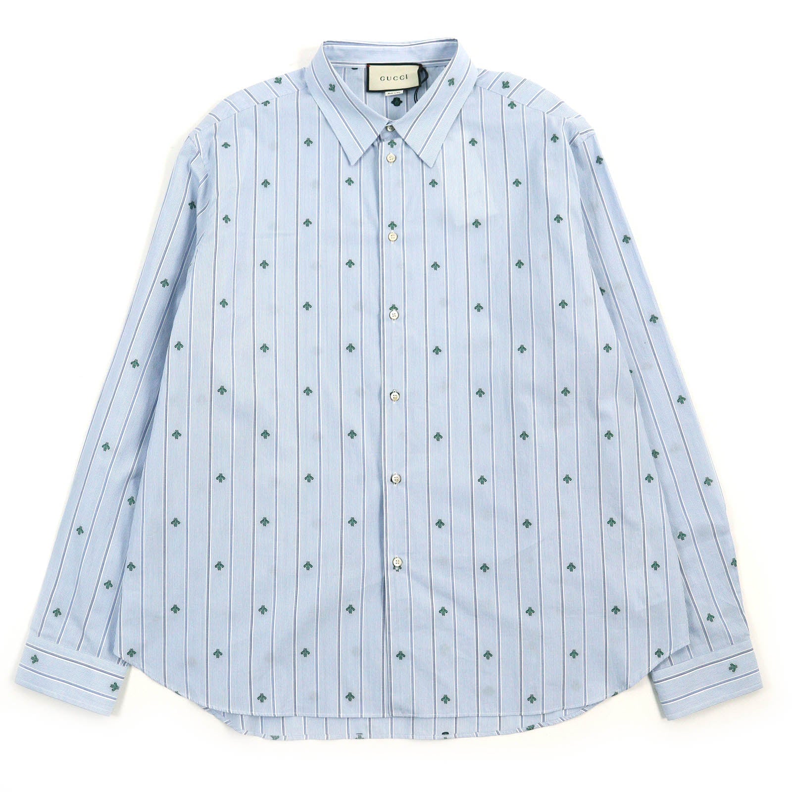 GUCCI Long sleeve shirt 574516 Main: 100% cotton Light Blue White Green mens 46|18 Used Authentic