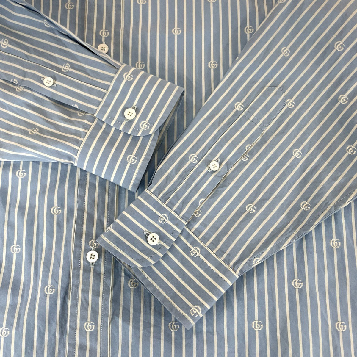GUCCI Long sleeve shirt 625888 ZAFXS cotton Light blue white Long sleeve shirt dress shirt Gucci Lido Interlocking GG stripe mens 42 Used Authentic