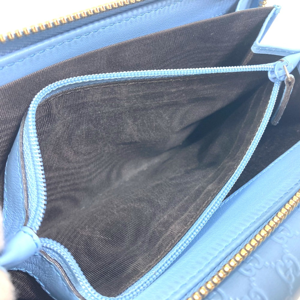 GUCCI Long Wallet Purse 449364 leather Light blue Micro Guccisima Women Used Authentic