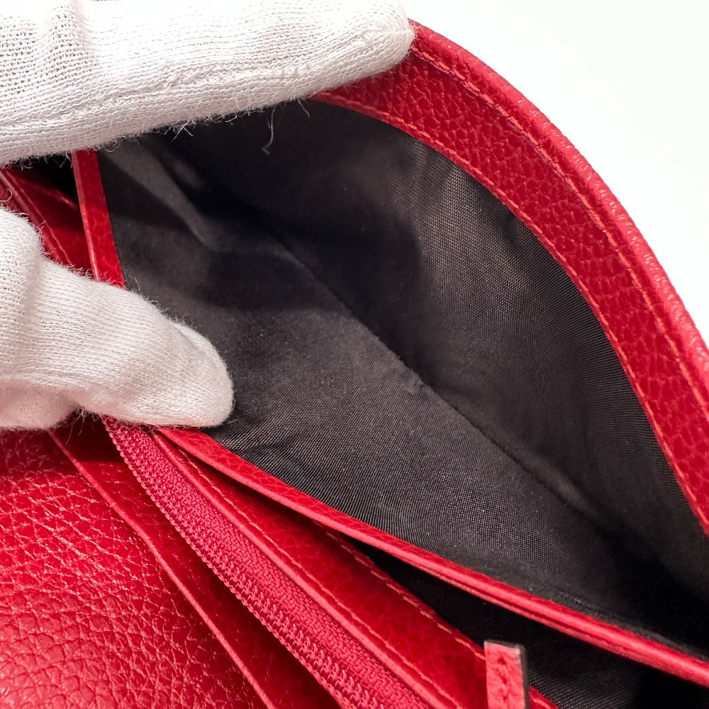 GUCCI Long Wallet Purse 456116 leather Red FF Marmont Women Used Authentic