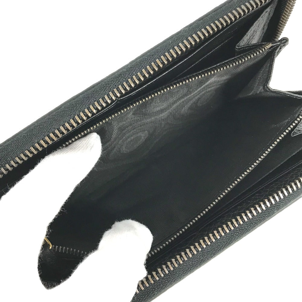 GUCCI Long Wallet Purse 739499 leather Navy GG Marmont Bamboo Zip Around Women Used Authentic