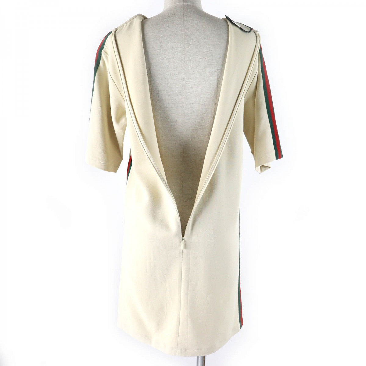 GUCCI one piece 528977 Outer: 97% rayon, Outer: 3% polyurethane, Part: 65% rayon, Part: 35% cotton Ivory Green Red Women 36 Used Authentic