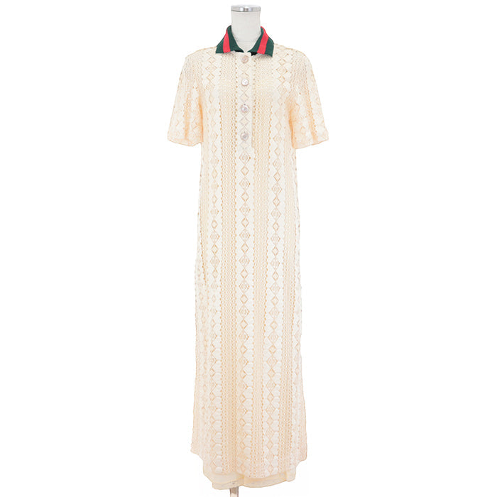 GUCCI one piece Collar: 87% cotton, 12% nylon, 1% polyurethane [Outer material] 94% cotton, 6% nylon beige Women 40 Used Authentic