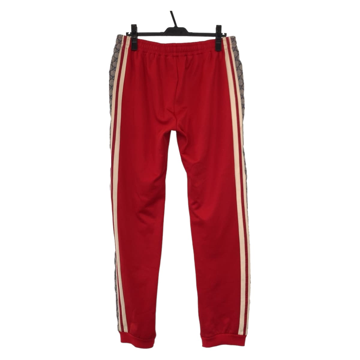 GUCCI Pants 545603 XJAC0 Polyester, Cotton Red red Track pants jersey Technical jersey Side line GG pattern mens L Used Authentic