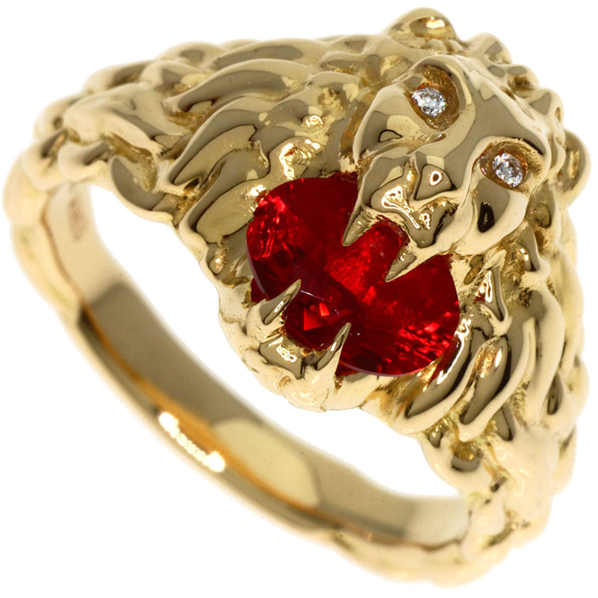 GUCCI Ring 18K Yellow Gold gold Lion Head Fire Opal Diamond #11