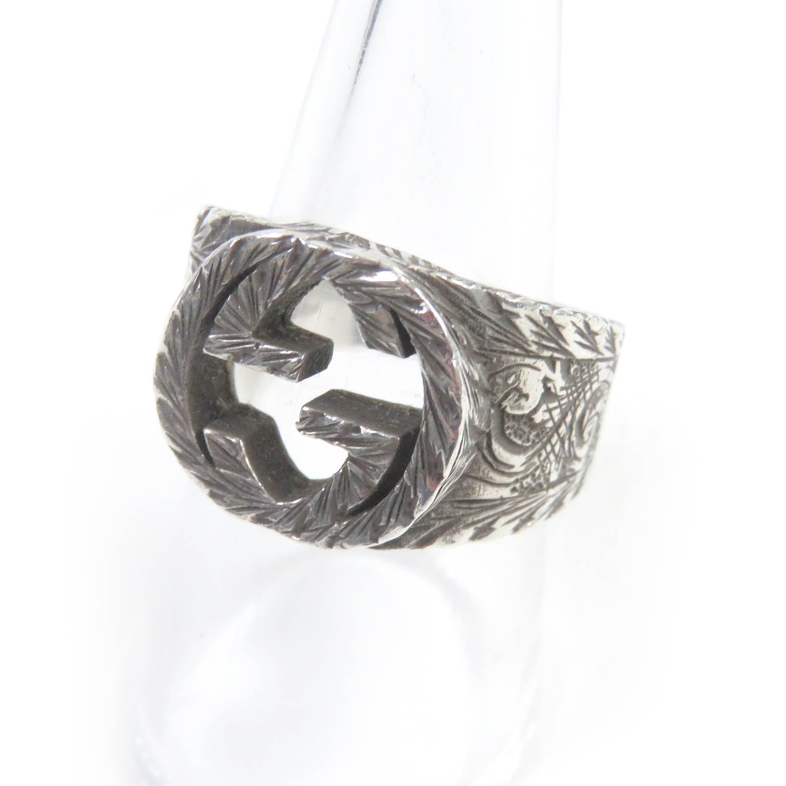GUCCI Ring Main�FAG925 Silver Carved silver Design ring Interlocking G mens Used Authentic