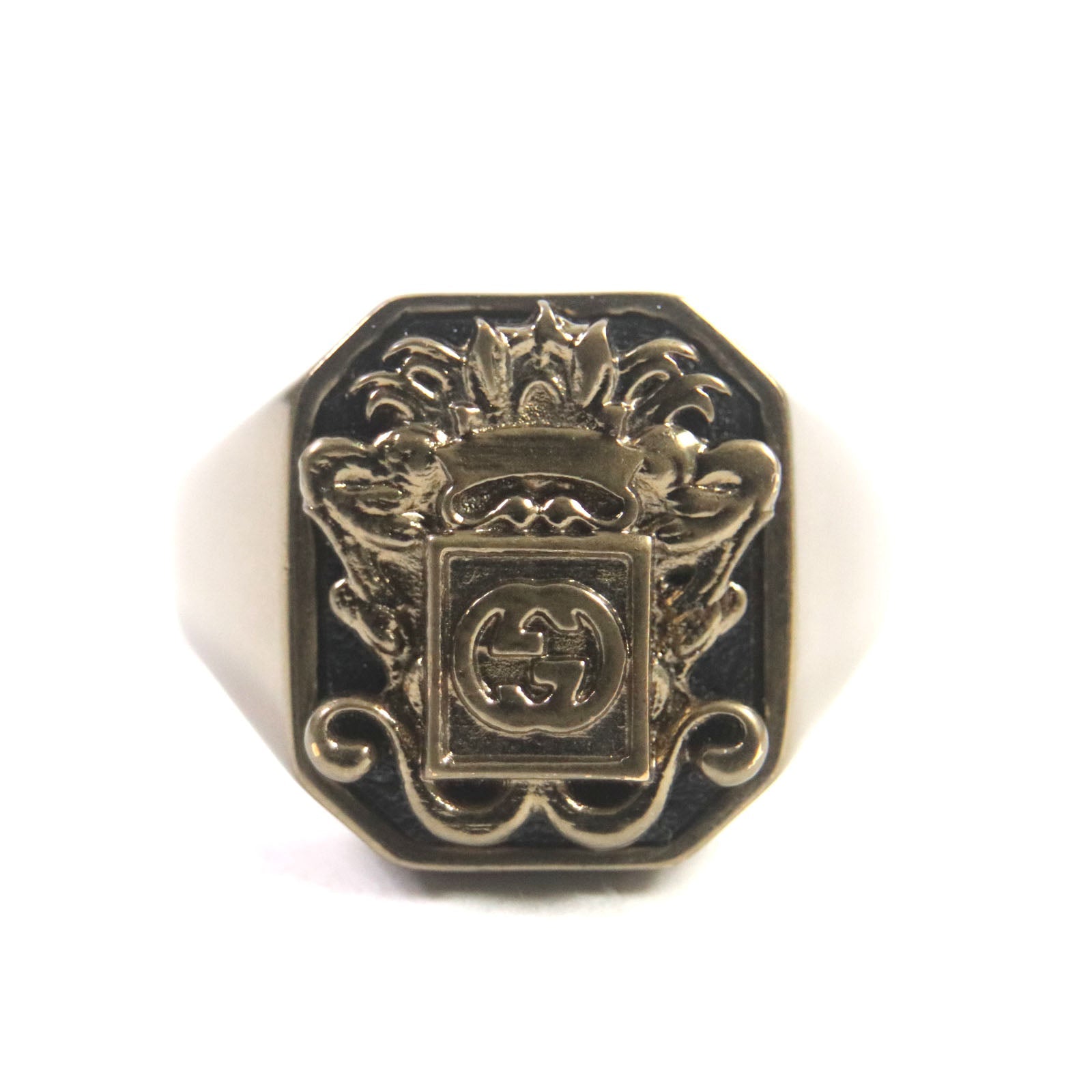 GUCCI Ring Silver925 Blast Gold Interlocking G Crest Ring mens 15 Used Authentic