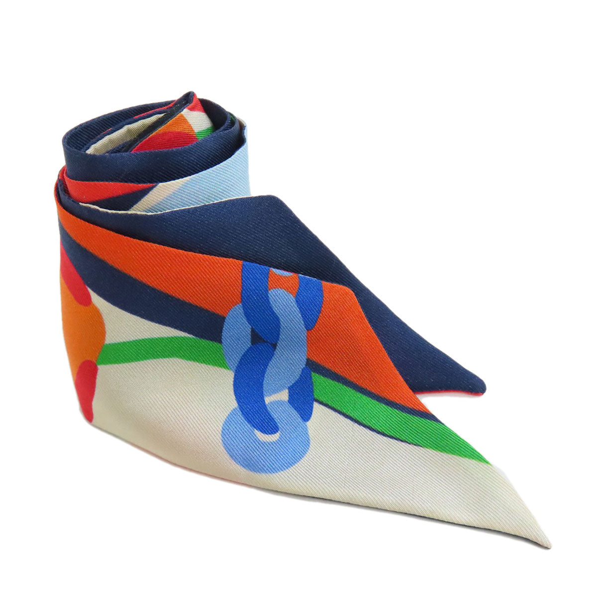 GUCCI scarf 732848 silk Navy Neck Bow Hibiscus Women Used Authentic