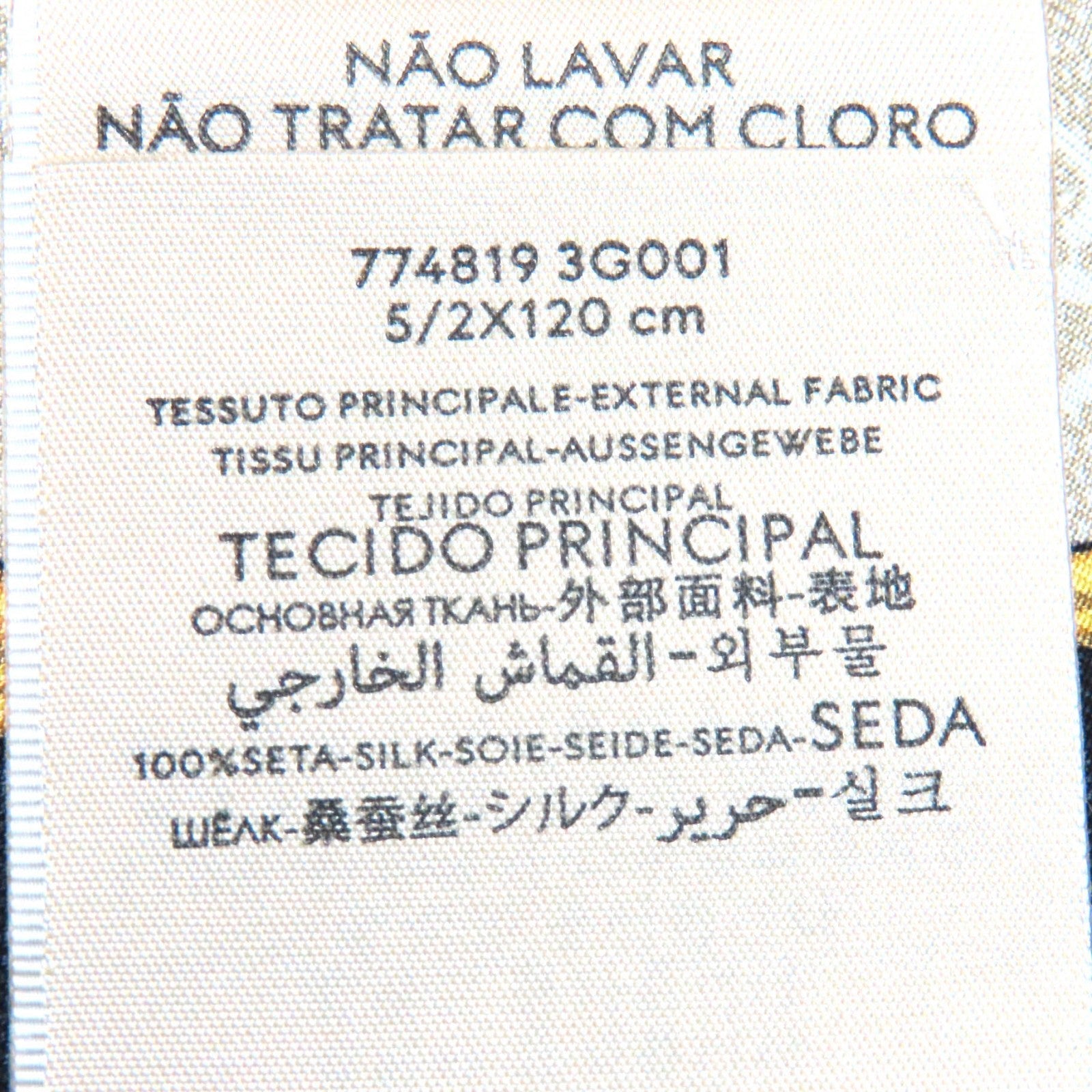 GUCCI scarf 774819 Main: 100% silk Black beige GG Chain Horsebit Print Silk Neck Bow Women Used Authentic