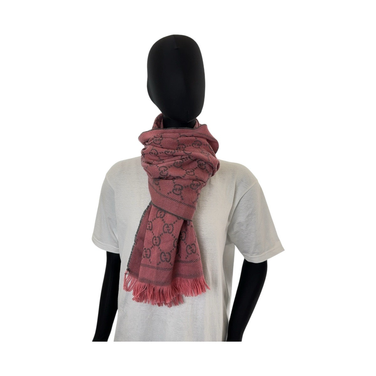 GUCCI Scarf wool Pink gray Muffler stall shawl GG pattern Women Used Authentic