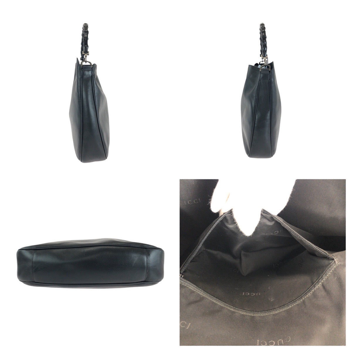 GUCCI Shoulder Bag 001 1577 leather BlackSilverMetal Shoulder Bag 2way Bamboo Women Used Authentic