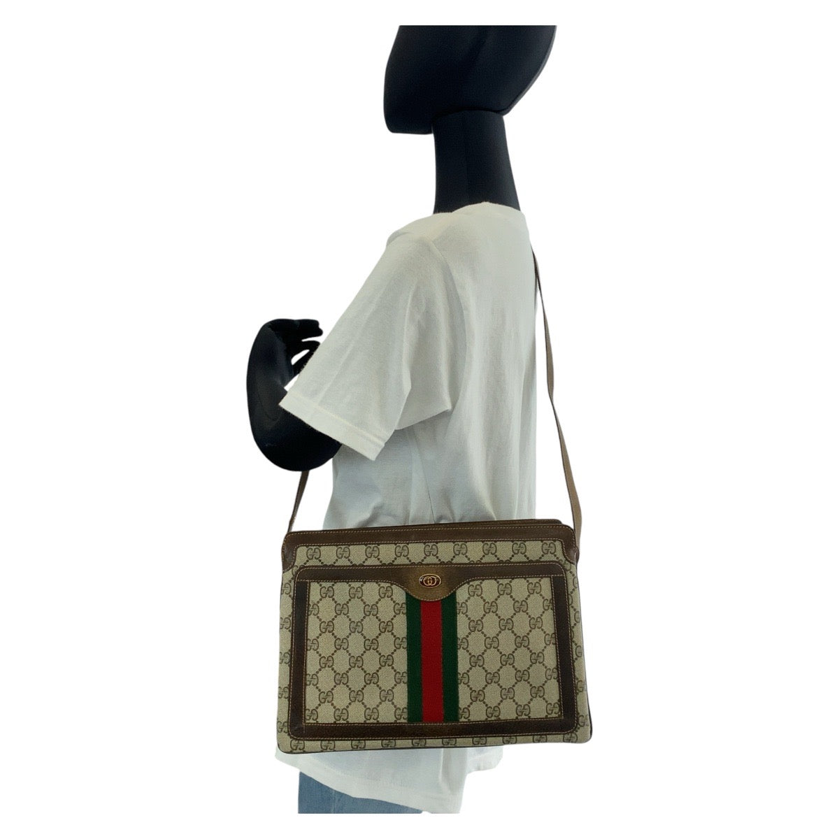 GUCCI Shoulder Bag 001 16 4035 GG Supreme canvas, leather Brown Gold Metal Crossbody Shoulder Bag Sherry line Old Gucci Women Used Authentic
