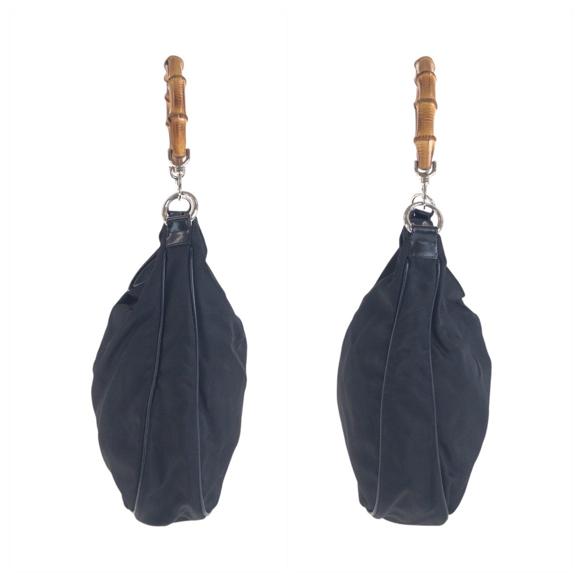GUCCI Shoulder Bag 001 2058 1577 Nylon, Bamboo Black SilverMetal Shoulder Bag Bamboo Women Used Authentic