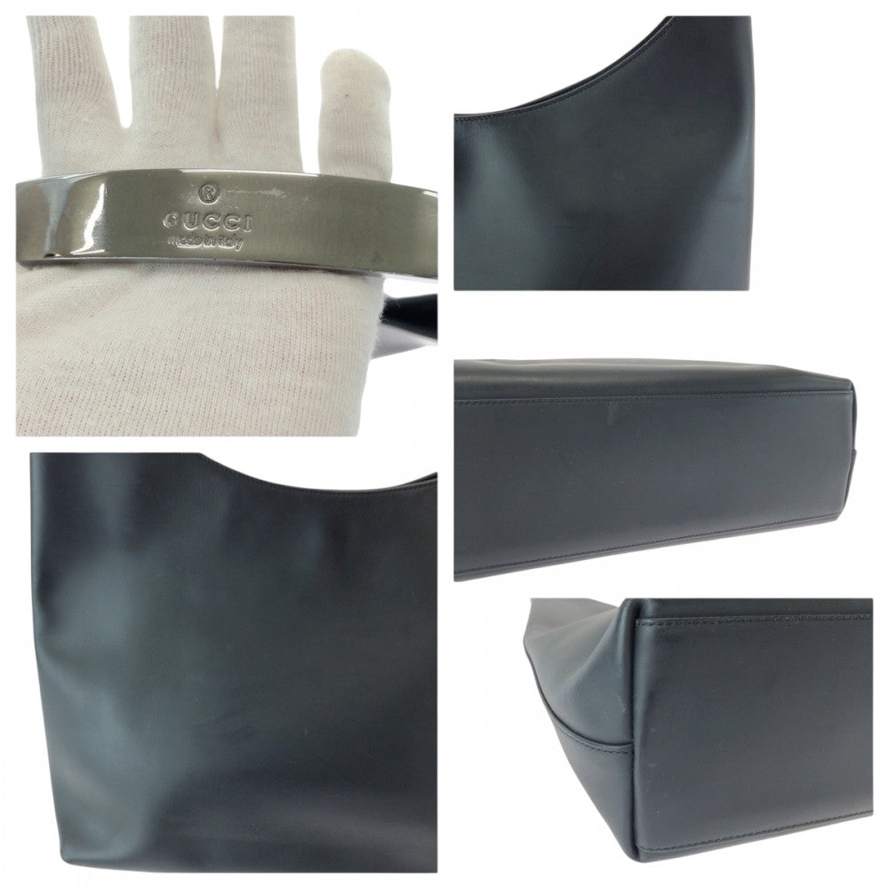 GUCCI Shoulder Bag 001 3297 leather Black Silver Metal One Shoulder Bag Hobo Women Used Authentic
