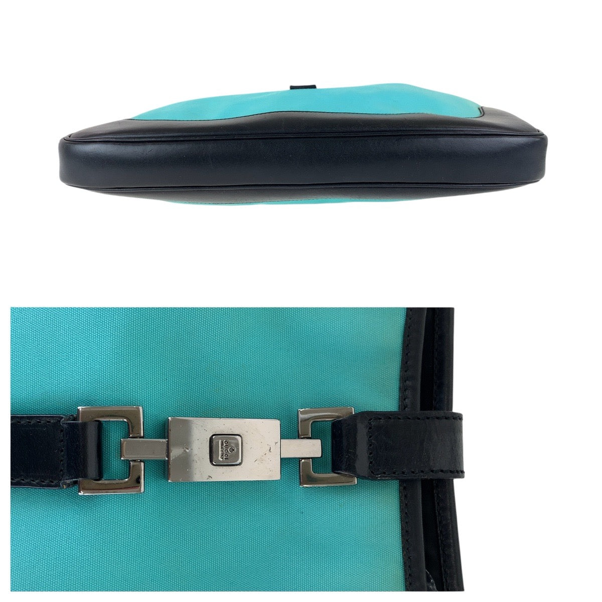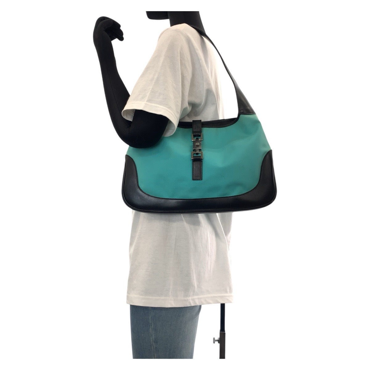 GUCCI Shoulder Bag 001 3306 Canvas, Leather Mint Green Black SilverMetal Jackie Hobo Women Used Authentic