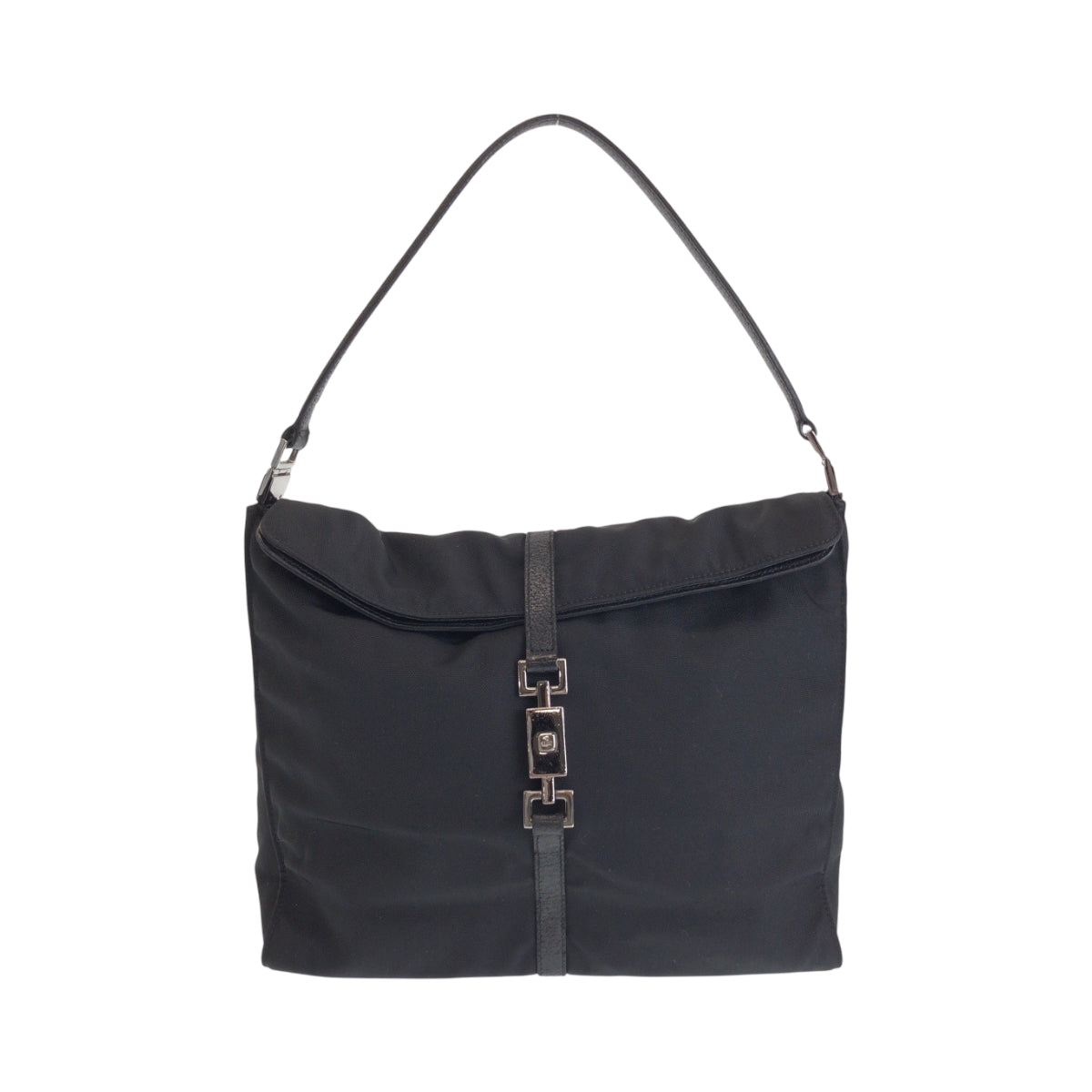 GUCCI Shoulder Bag 001 3355 Nylon Black SilverMetal One Shoulder Bag Jackie Women Used Authentic