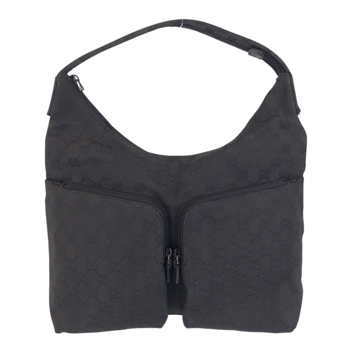 GUCCI Shoulder Bag 001 3380 GG canvas Black black Women Used Authentic