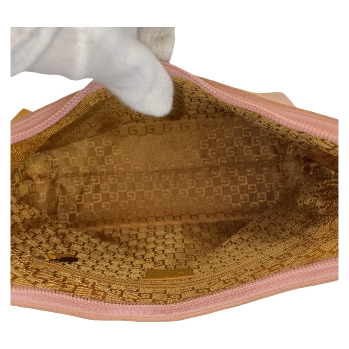 GUCCI Shoulder Bag 001 3386 Suede Pink Gold Metal Shoulder Bag Women Used Authentic