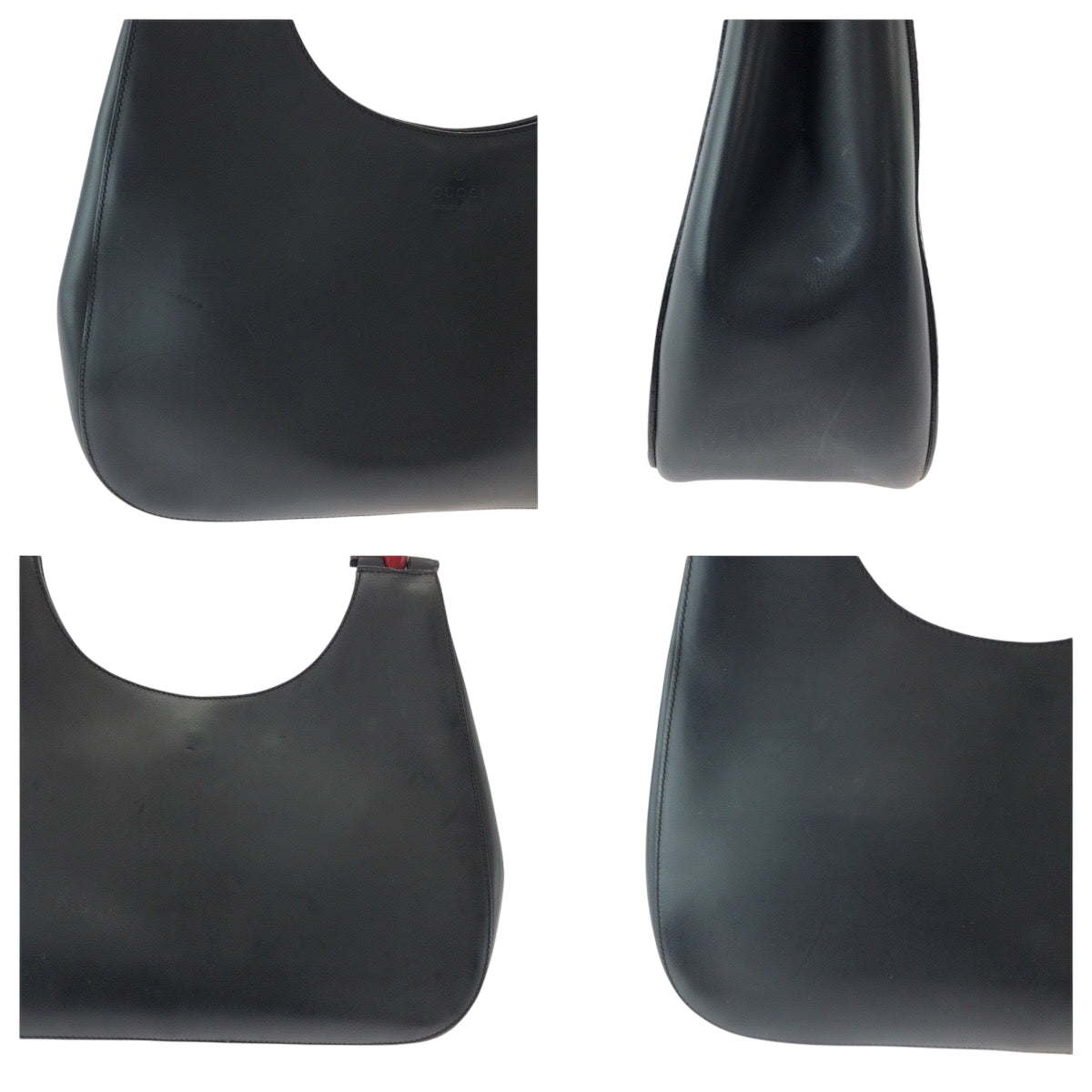 GUCCI Shoulder Bag 001 3739 leather Black black red One Shoulder Bag Bamboo Women Used Authentic