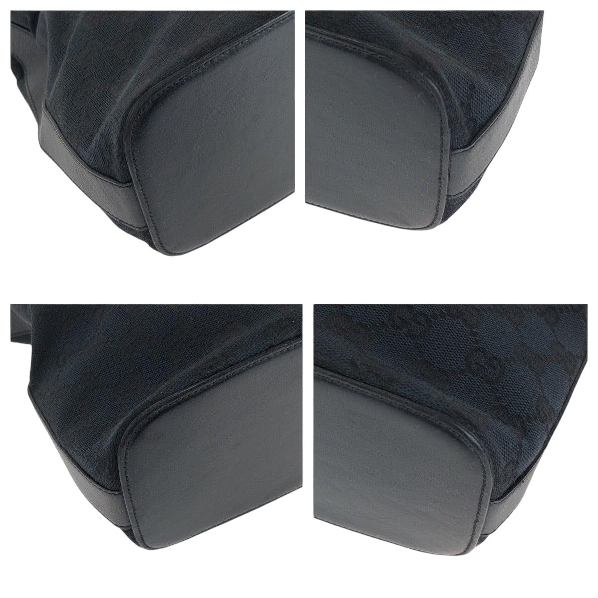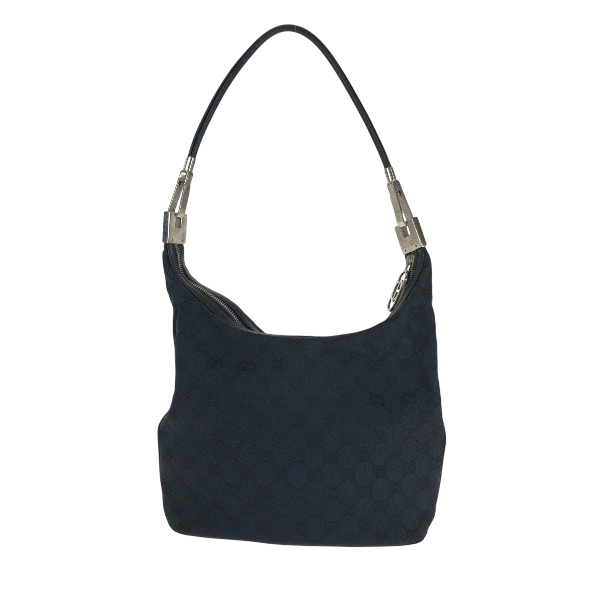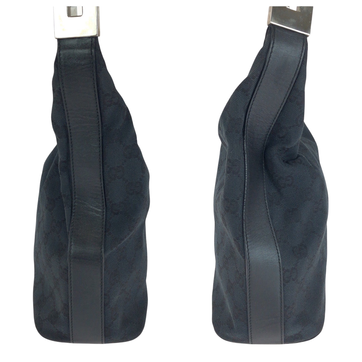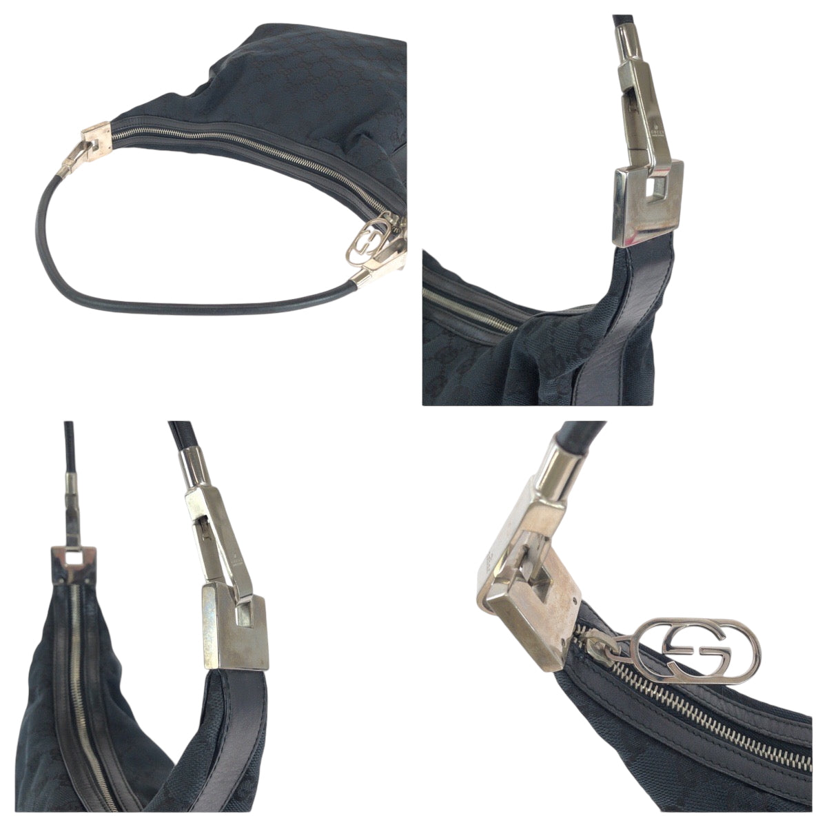 GUCCI Shoulder Bag 001 3814 GG canvas Black SilverMetal Hobo Shoulder Bag Women Used Authentic
