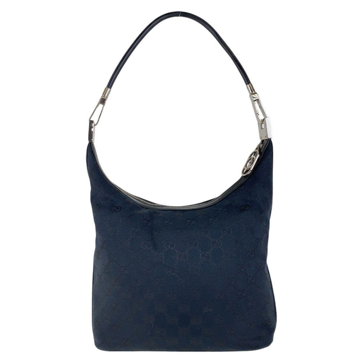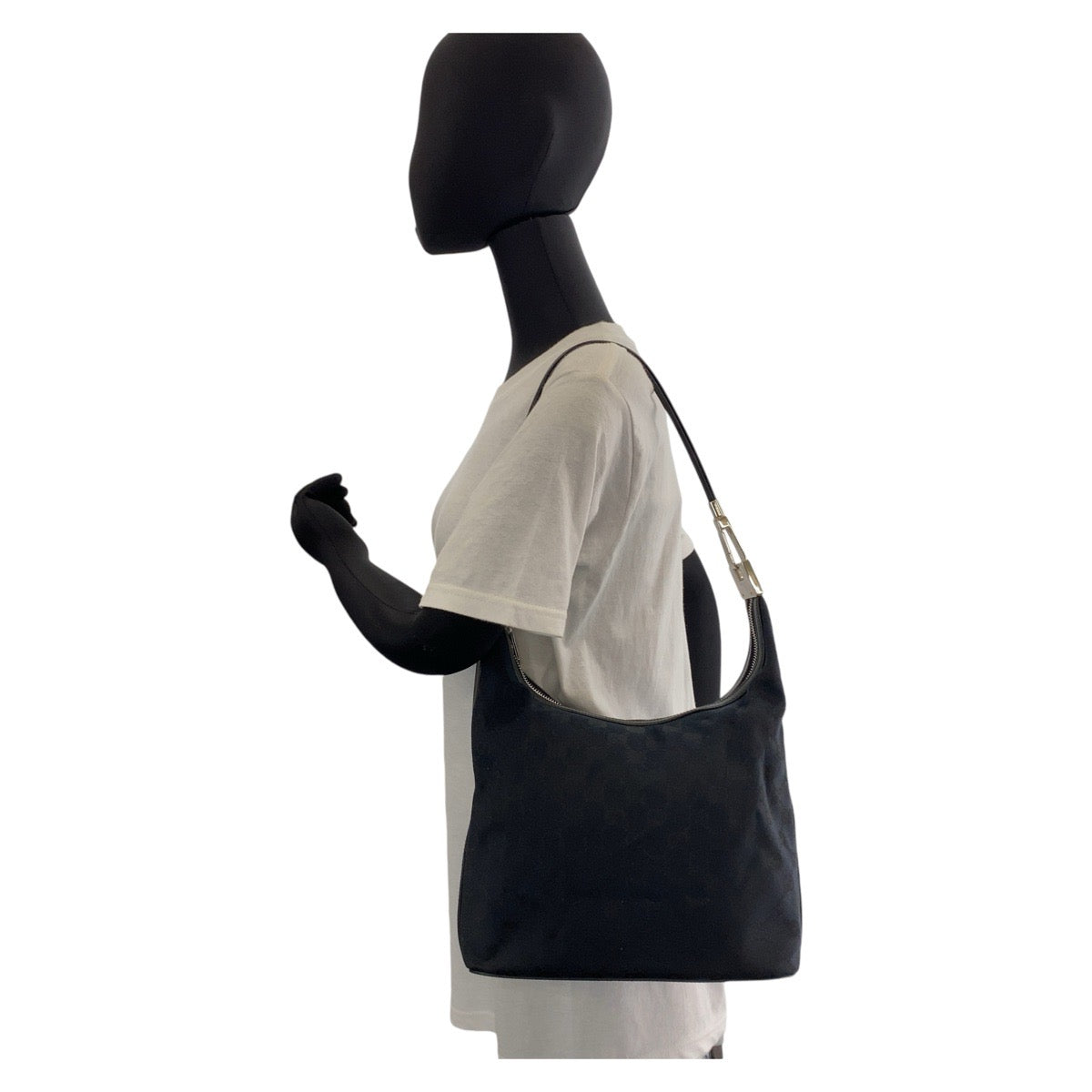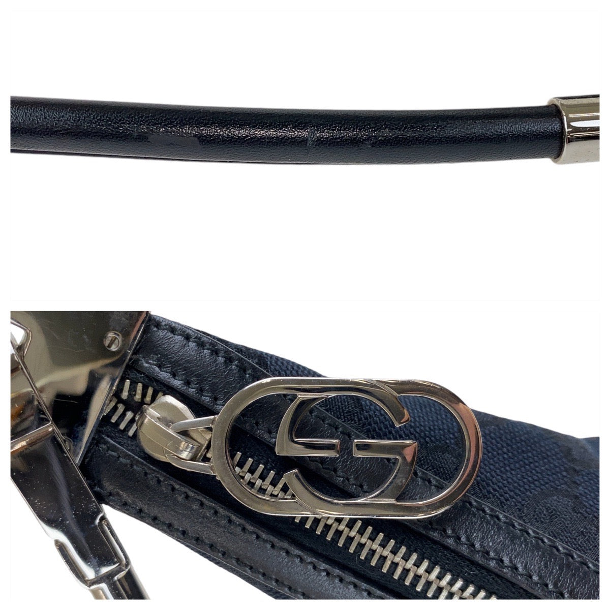 GUCCI Shoulder Bag 001 3814 GG canvas, leather Black SilverMetal Hobo Shoulder Bag Women Used Authentic