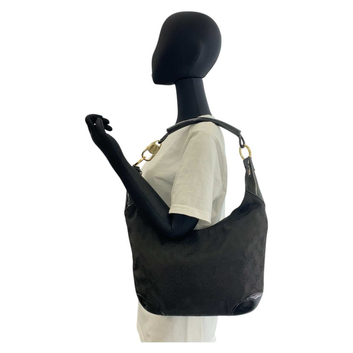 GUCCI Shoulder Bag 001 4157 GG canvas, leather Black GoldMetal Women Used Authentic