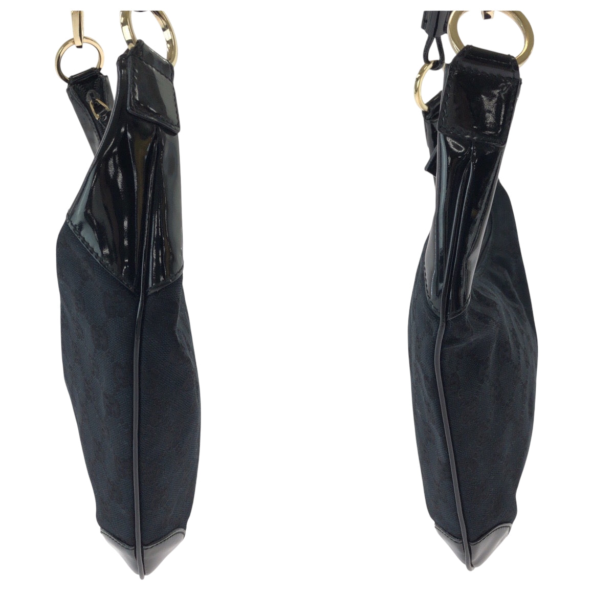 GUCCI Shoulder Bag 001 4158 GG canvas, enamel Black GoldMetal Hobo One Shoulder Bag Women Used Authentic