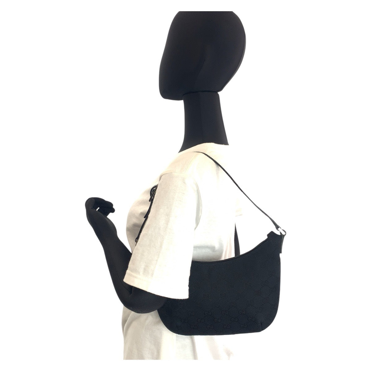 GUCCI Shoulder Bag 005 0813 GG canvas, leather Black black Women Used Authentic