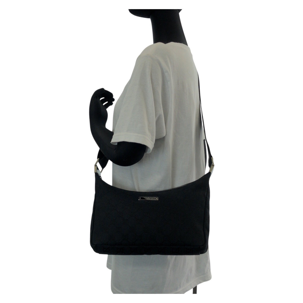 GUCCI Shoulder Bag 019 0433 GG canvas Black SilverMetal Shoulder Bag pochette Women Used Authentic