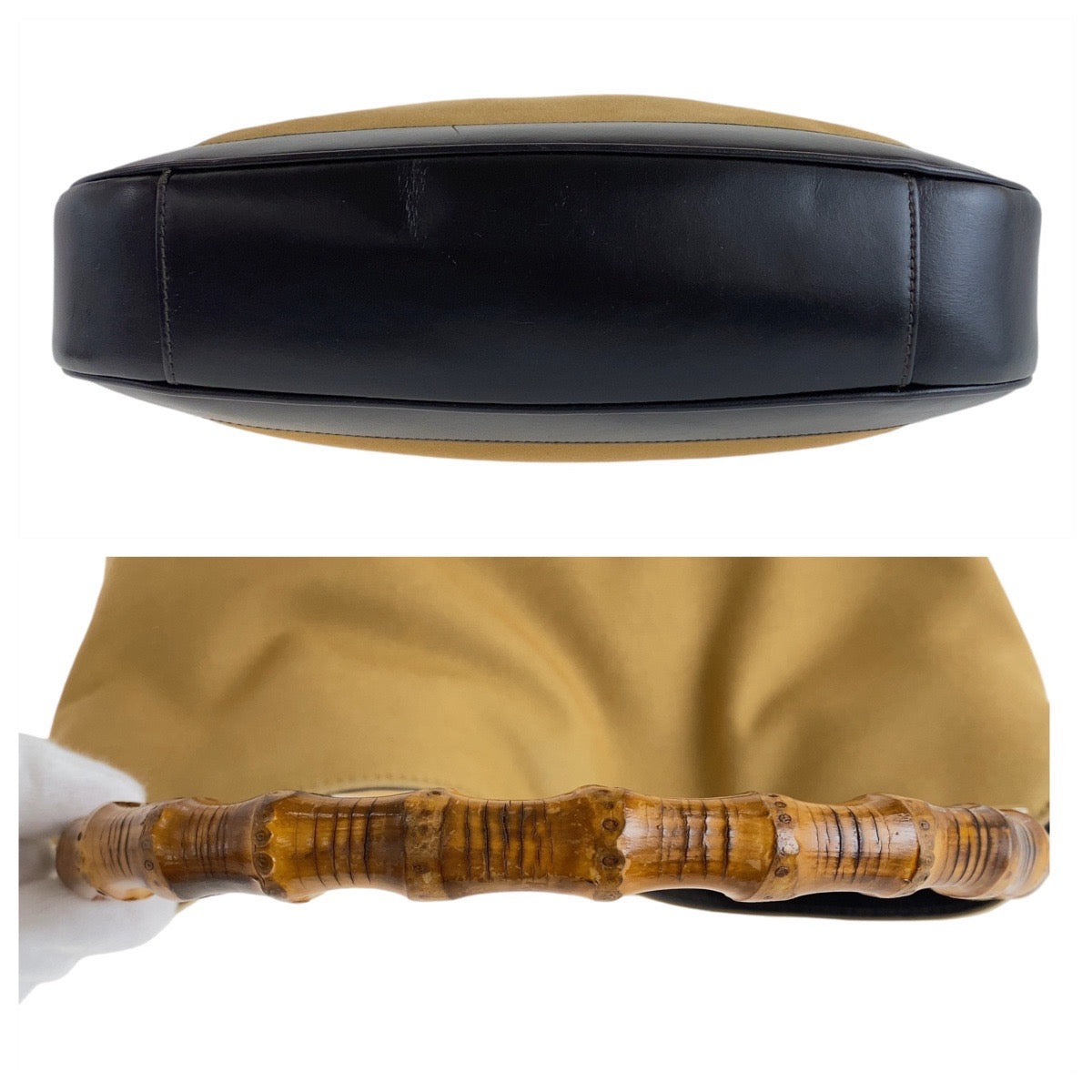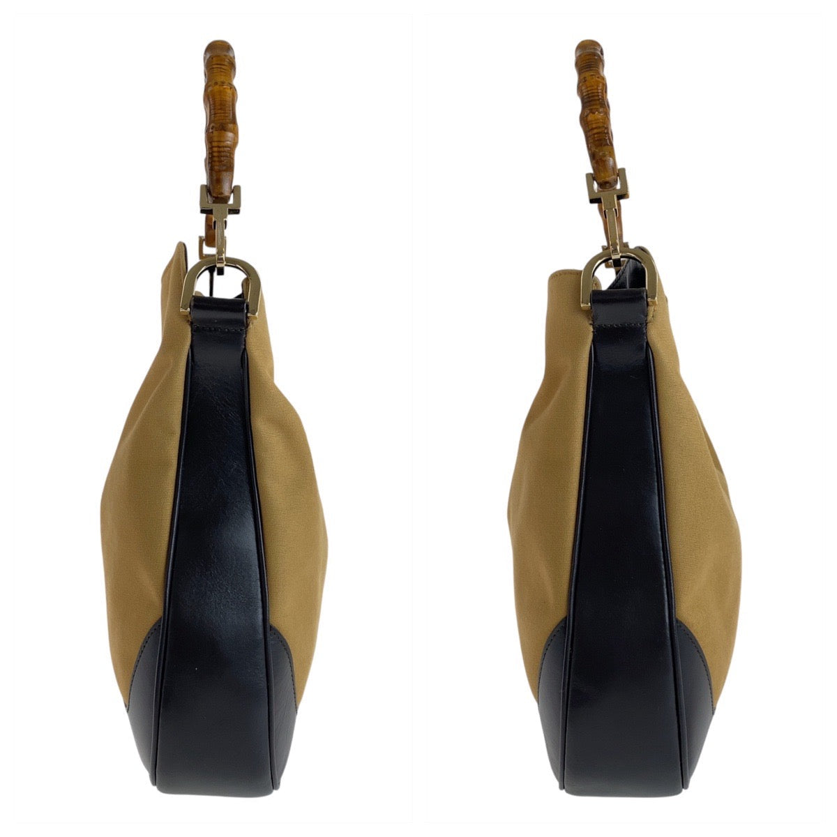 GUCCI Shoulder Bag 1.4095 Canvas, Leather Beige Gold Metal Hobo Shoulder Bag Handbag Shelly Line Bamboo Women Used Authentic