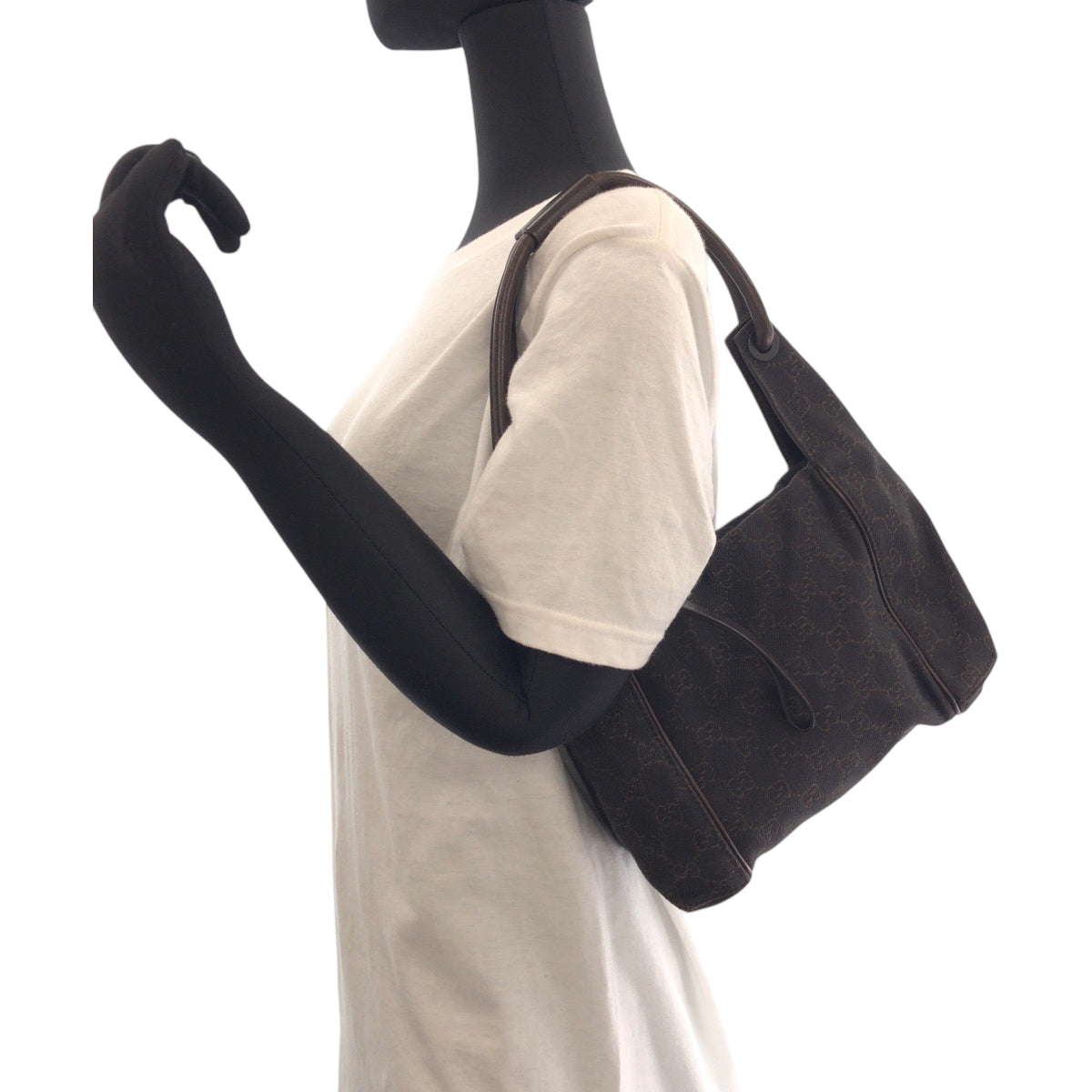GUCCI Shoulder Bag 101333 GG canvas Brown Black Metal Shoulder Bag handbag Women Used Authentic