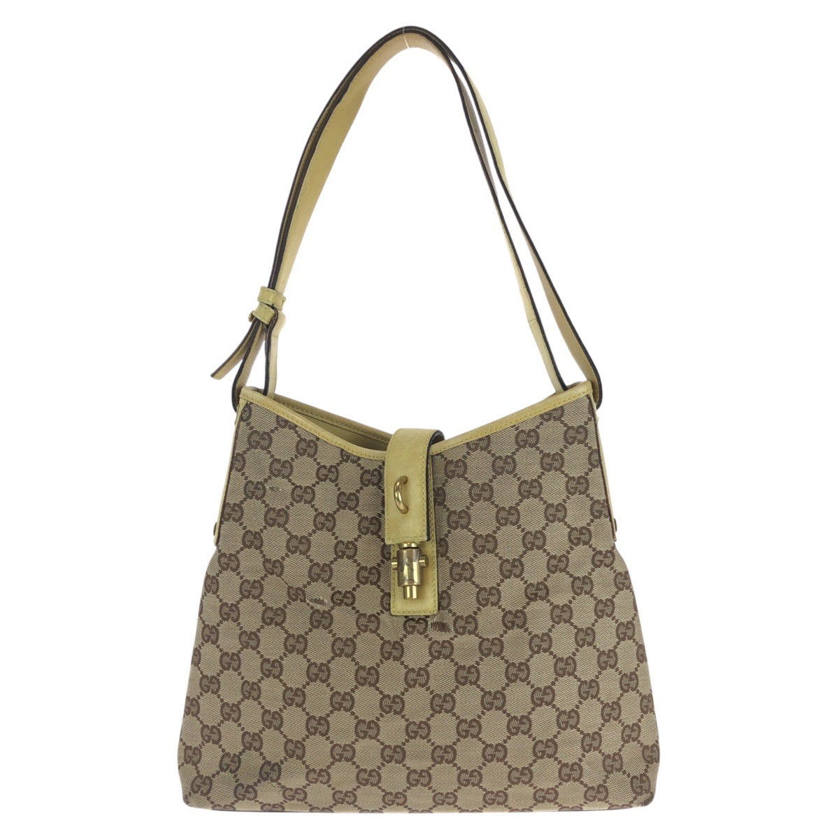 GUCCI Shoulder Bag 110291 GG canvas, leather Yellow Beige Gold Metal Jackie Women Used Authentic