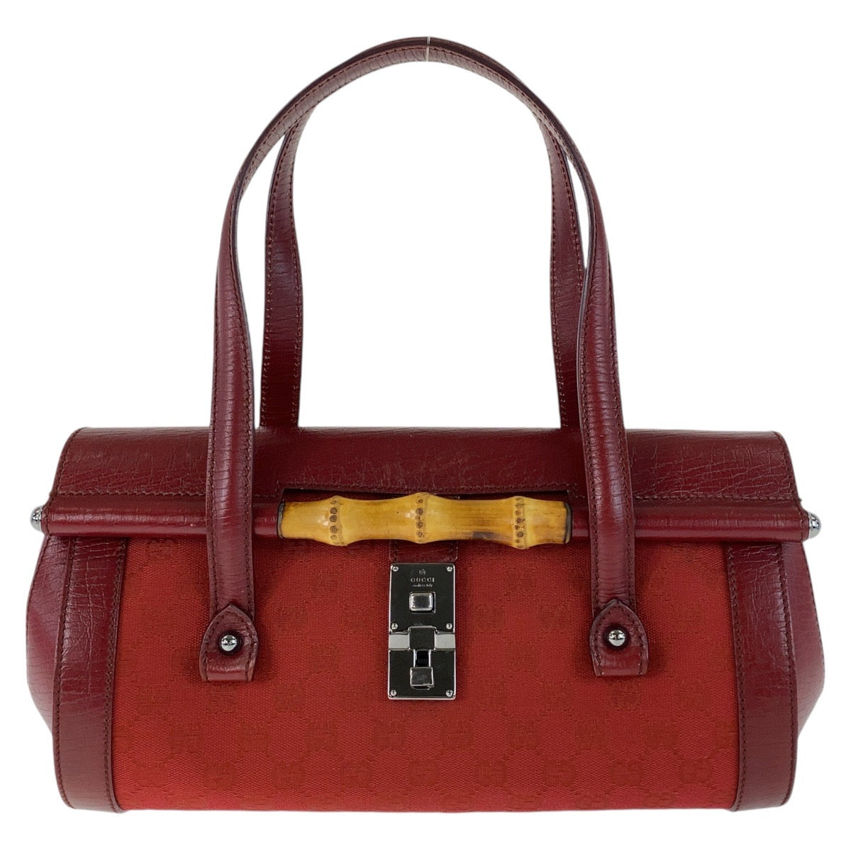 GUCCI Shoulder Bag 111713 GG canvas, leather Red Silver Metal Shoulder Bag Bamboo Women Used Authentic
