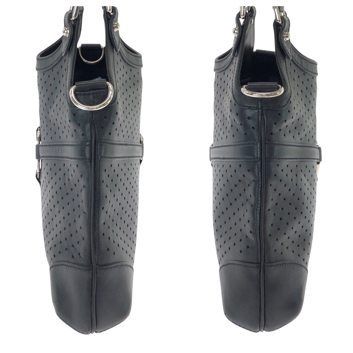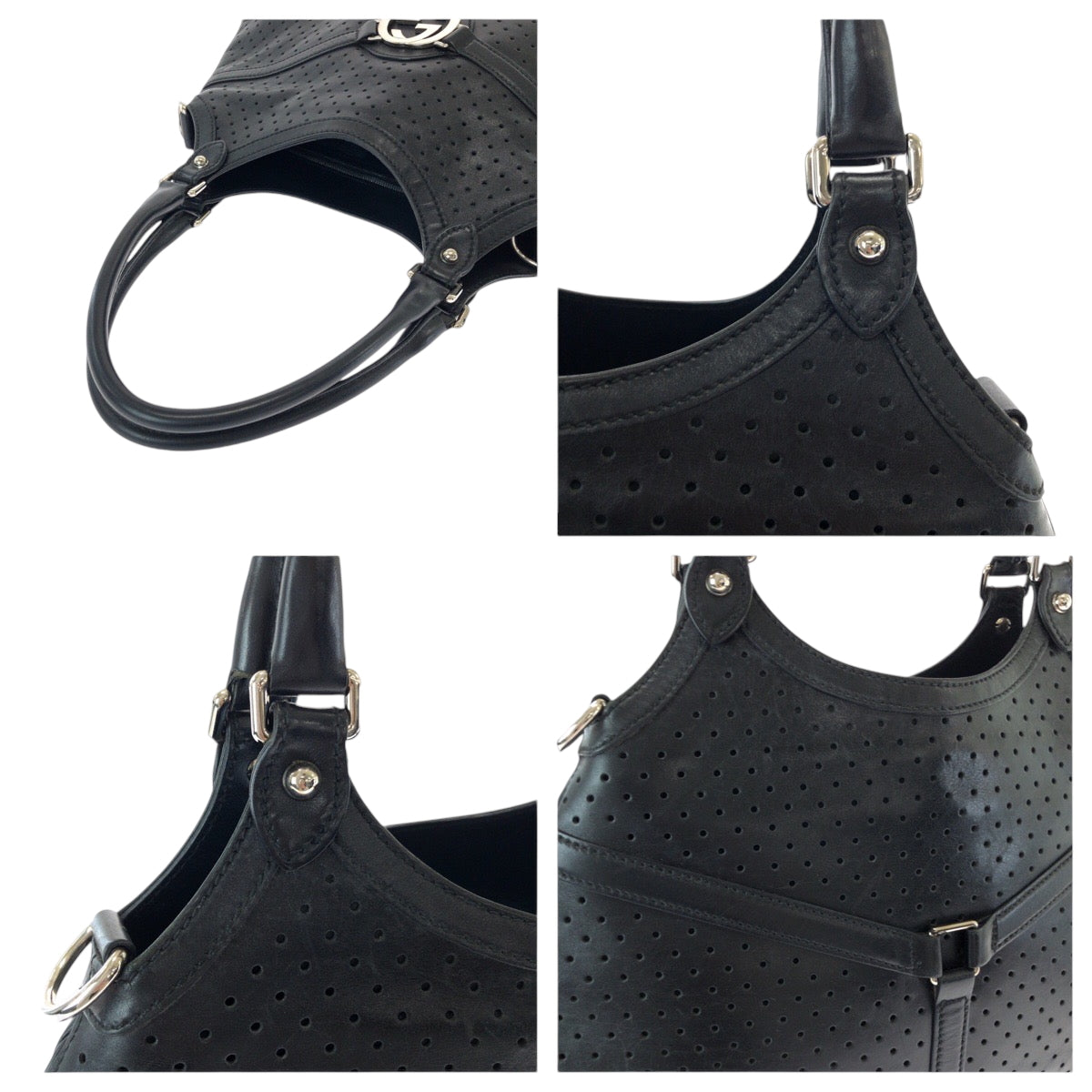 GUCCI Shoulder Bag 114875 leather Black SilverMetal Hobo Shoulder Bag Interlocking Women Used Authentic