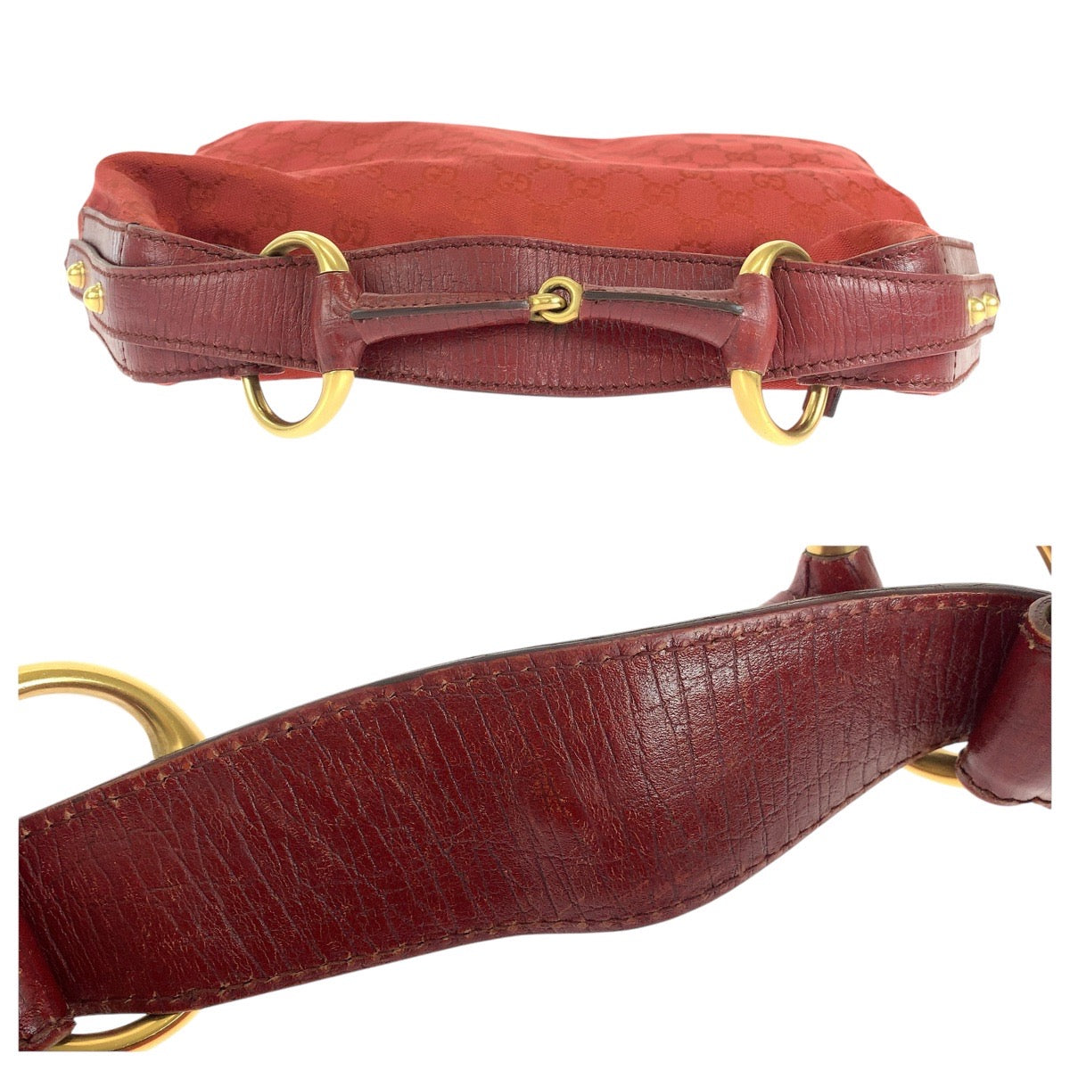 GUCCI Shoulder Bag 115867 GG canvas, leather Red Gold Metal Horsebit Women Used Authentic