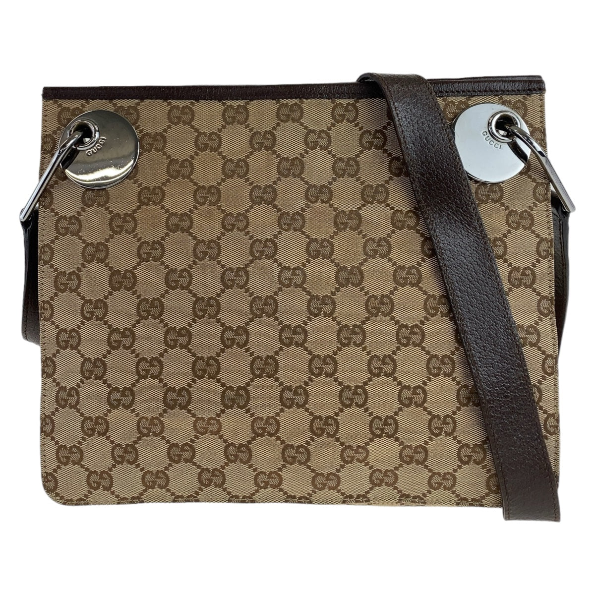 GUCCI Shoulder Bag 120841 GG canvas, leather Beige Brown SilverMetal Crossbody Shoulder Bag Messenger Bag GG pattern Women Used Authentic