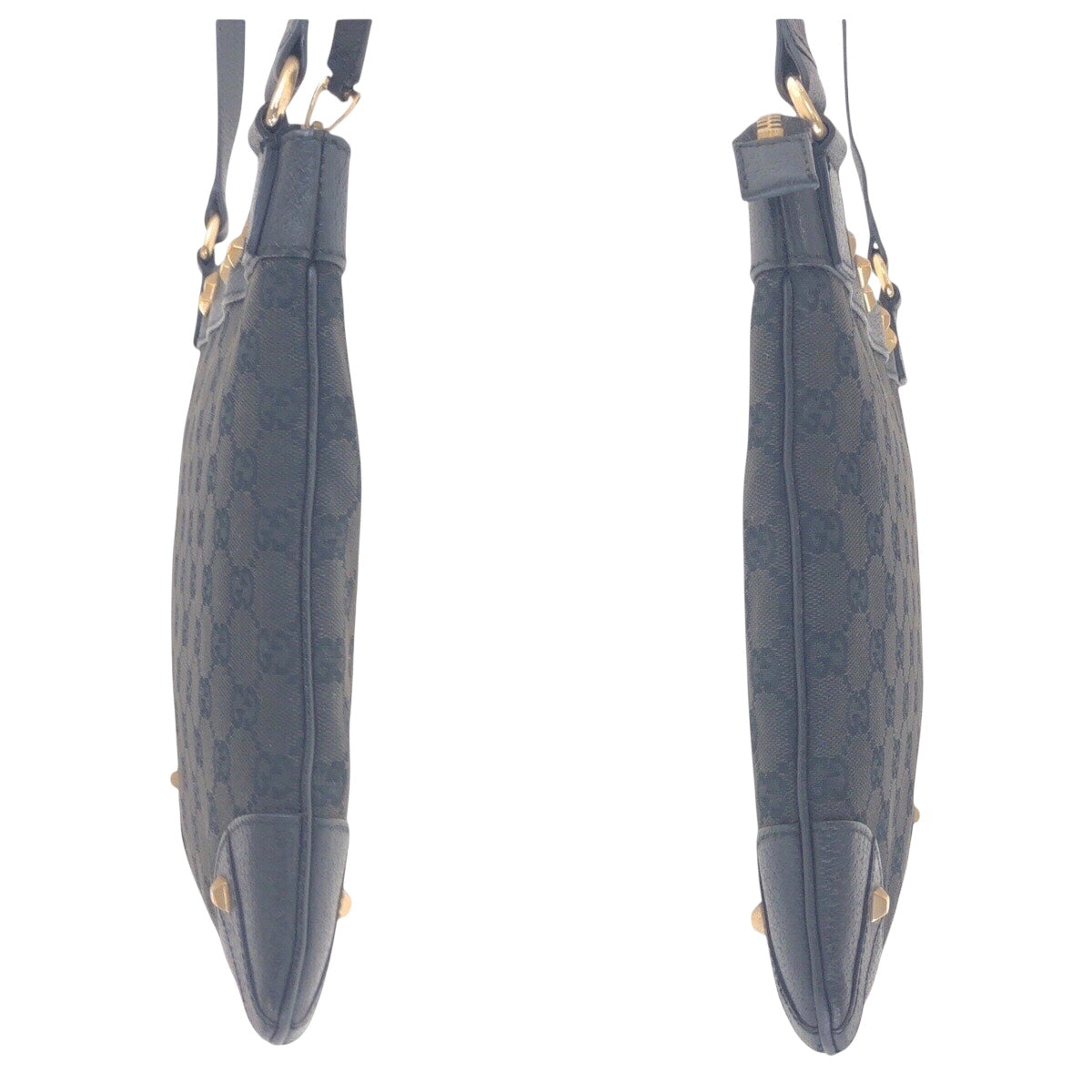 GUCCI Shoulder Bag 120893 GG canvas, leather Black GoldMetal Crossbody Shoulder Bag with studs Women Used Authentic