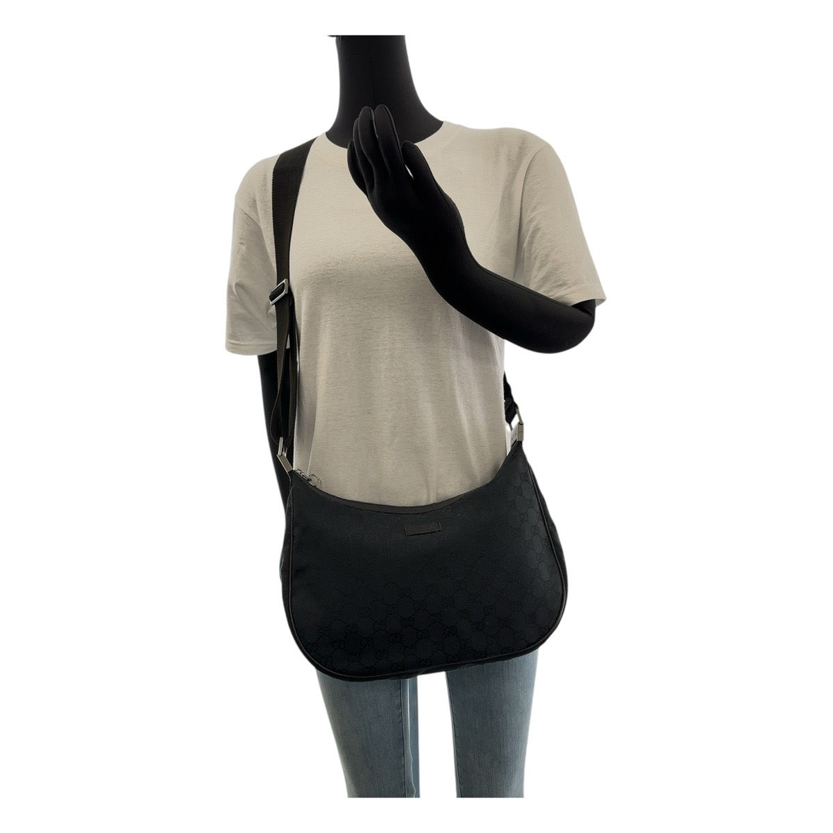 GUCCI Shoulder Bag 122790 GG canvas Black SilverMetal Crossbody Shoulder Bag Women Used Authentic