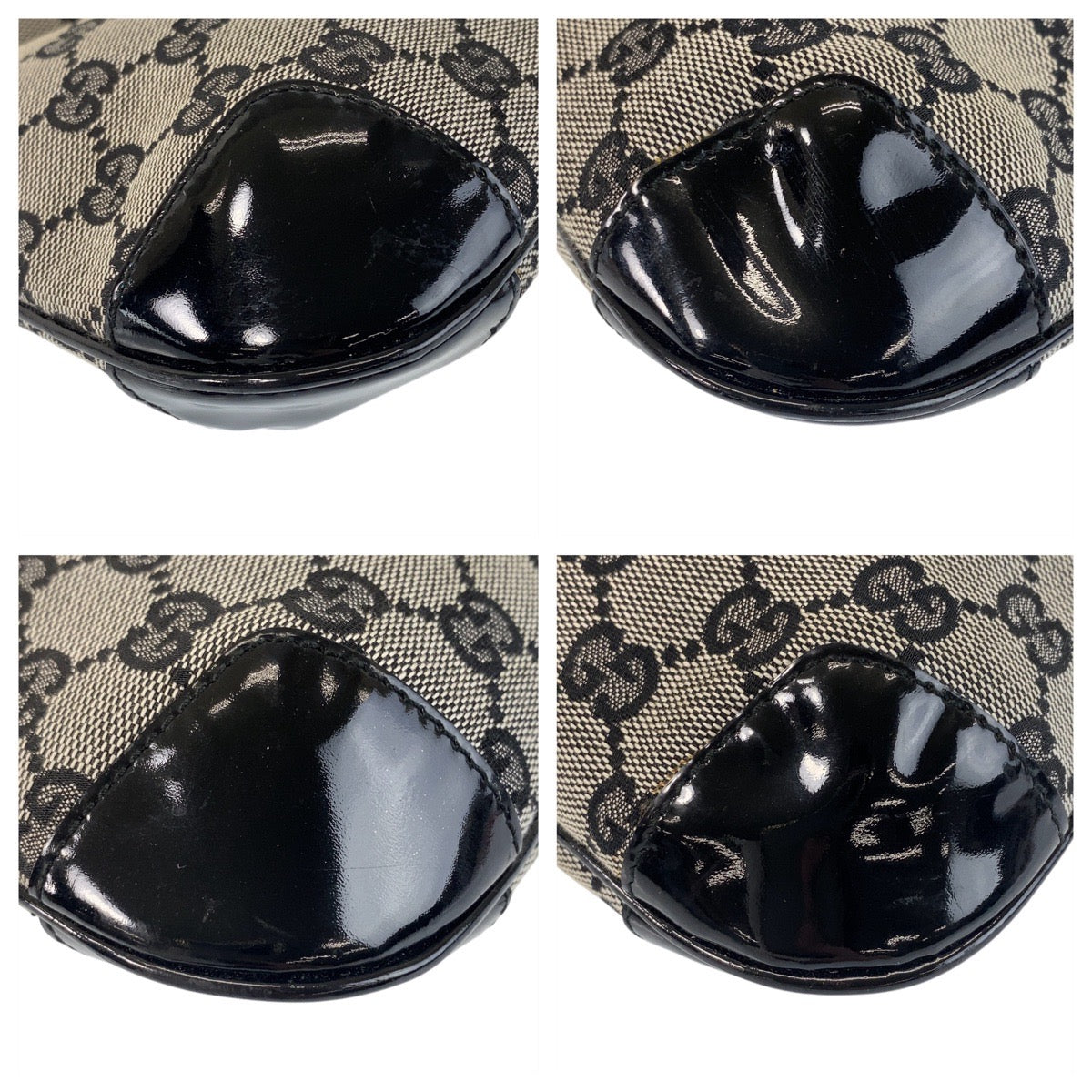 GUCCI Shoulder Bag 14147 GG canvas, enamel Black GoldMetal Women Used Authentic